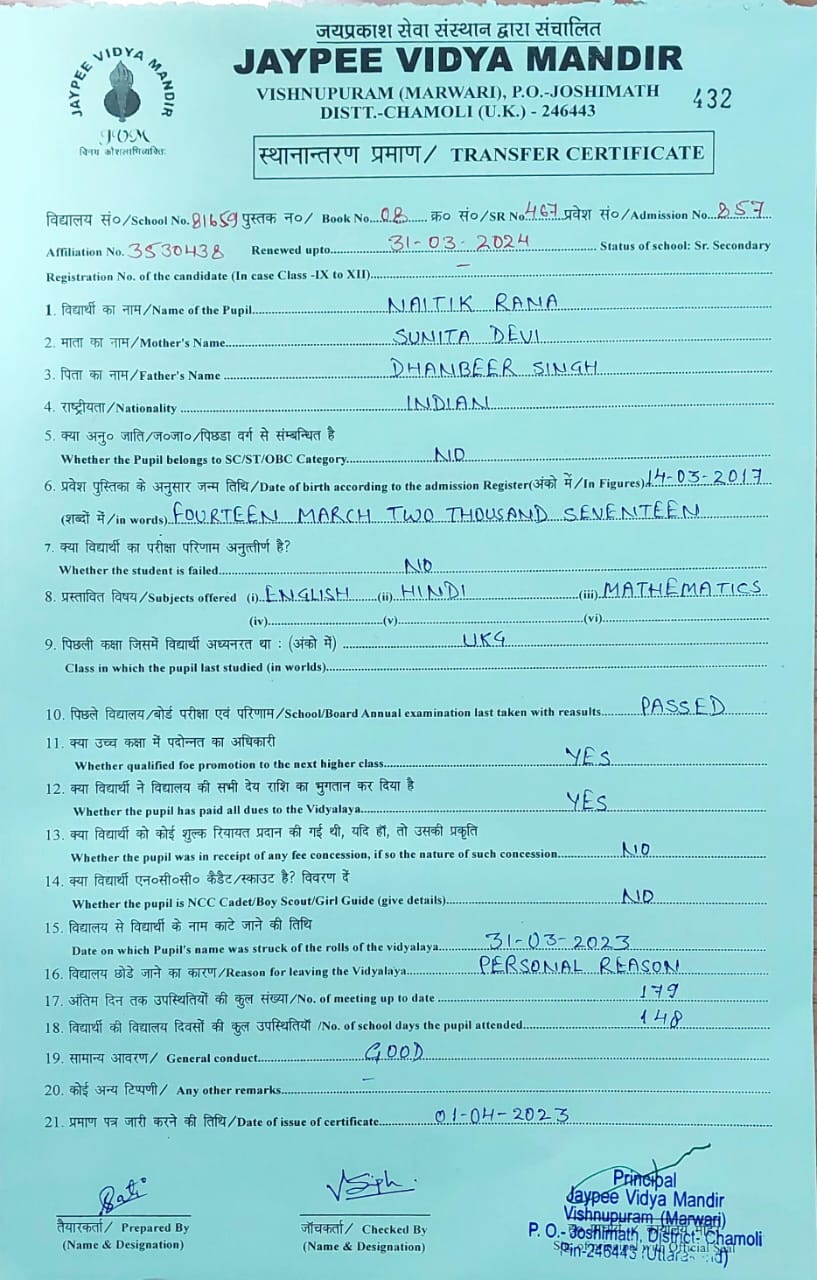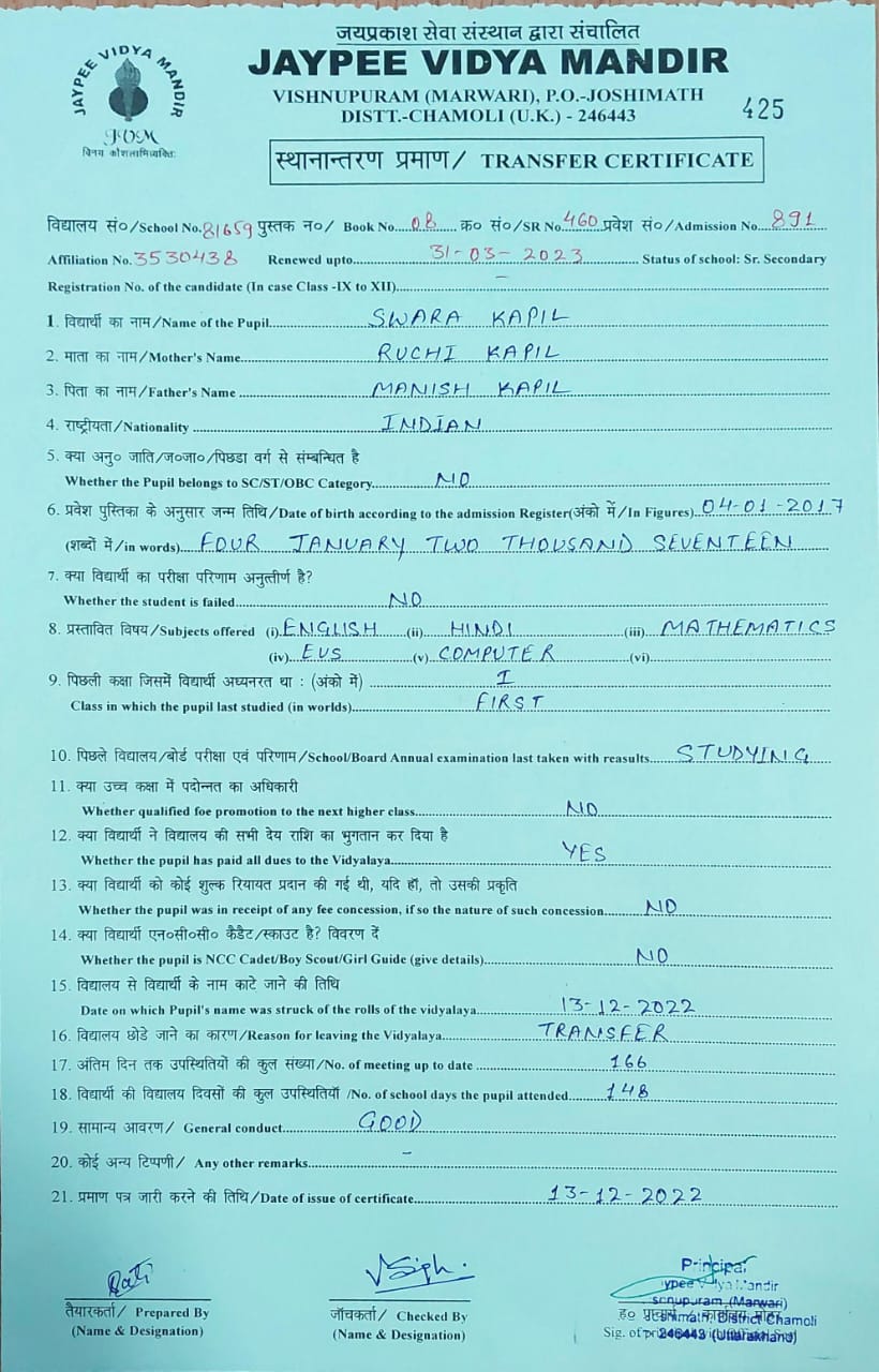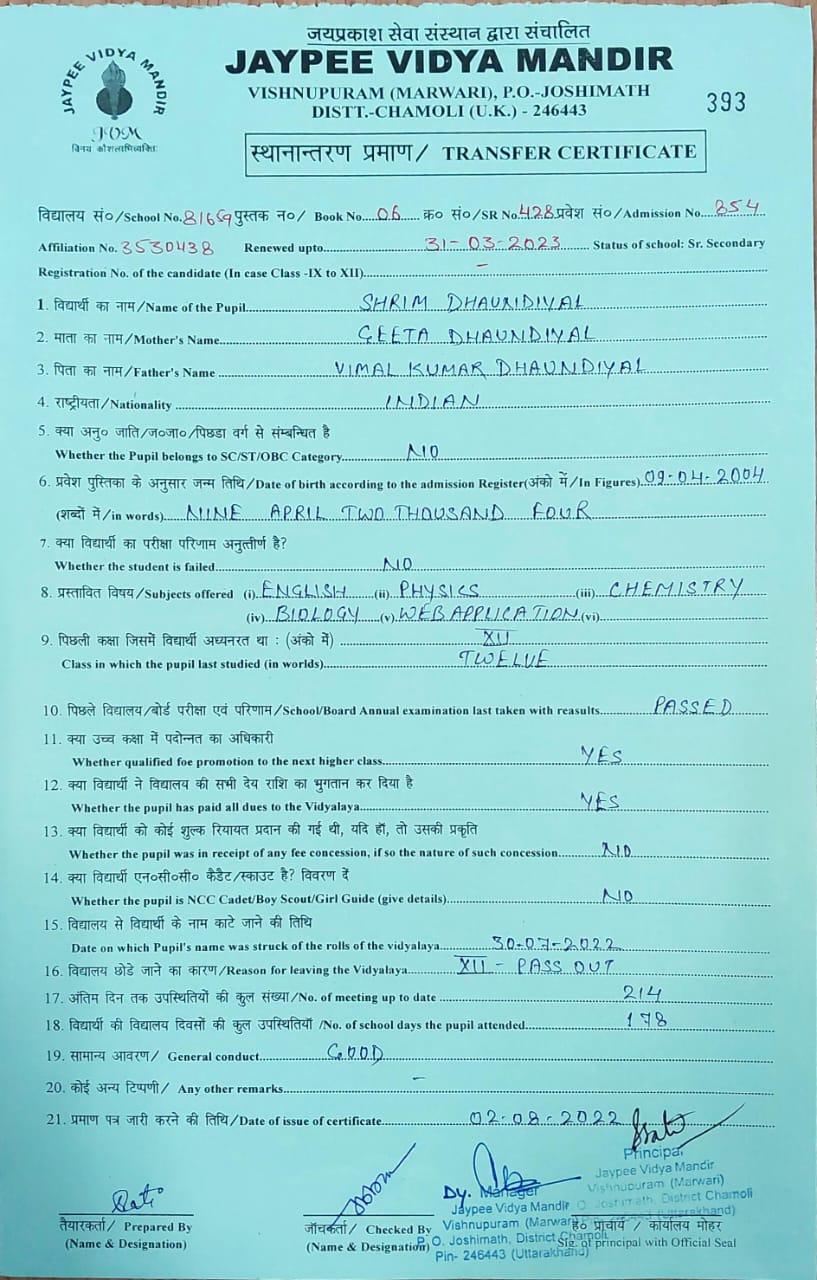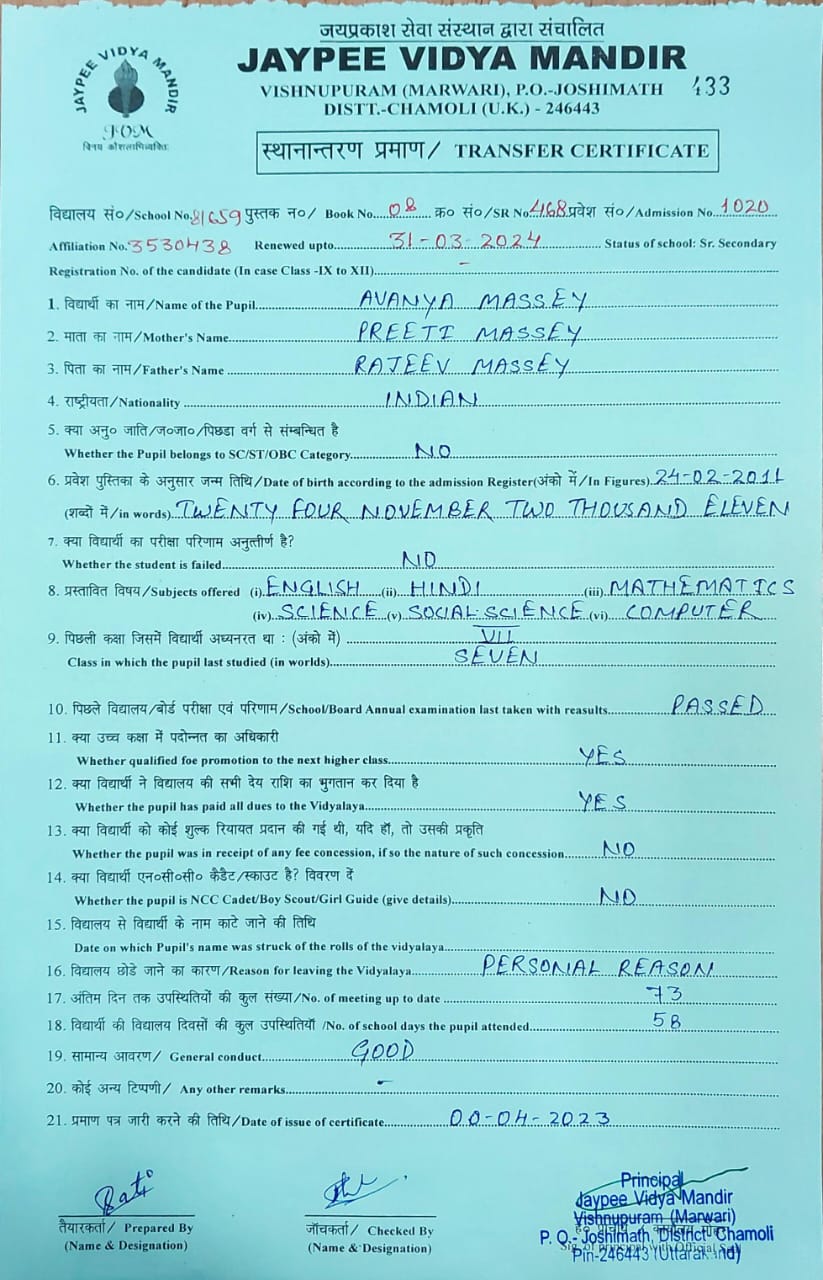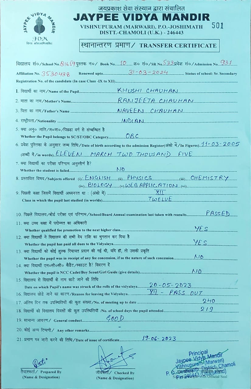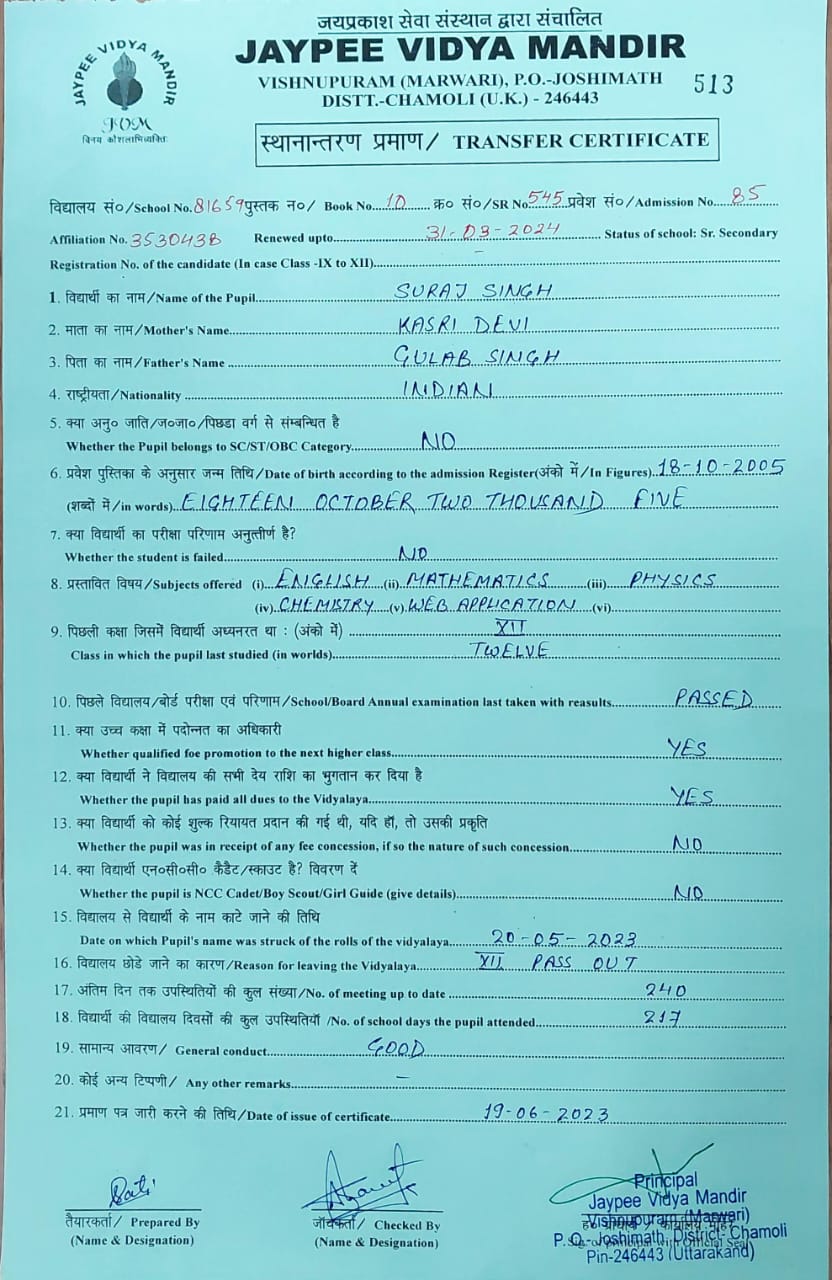 Tranfer Certificate |