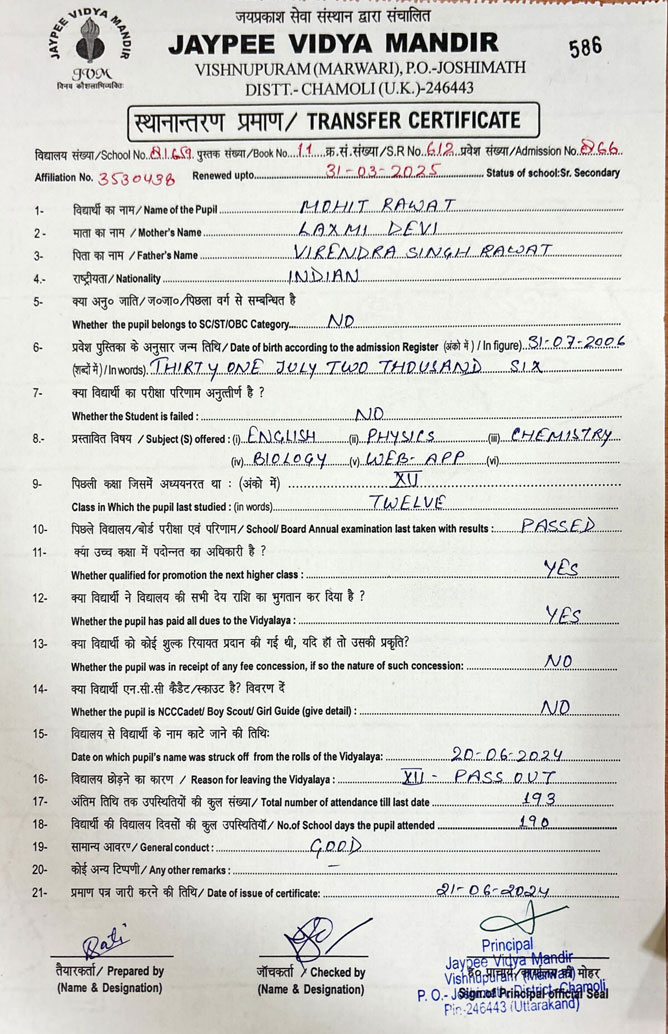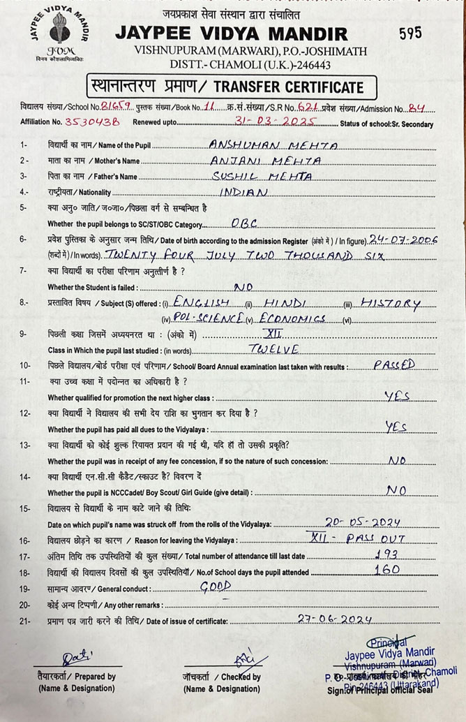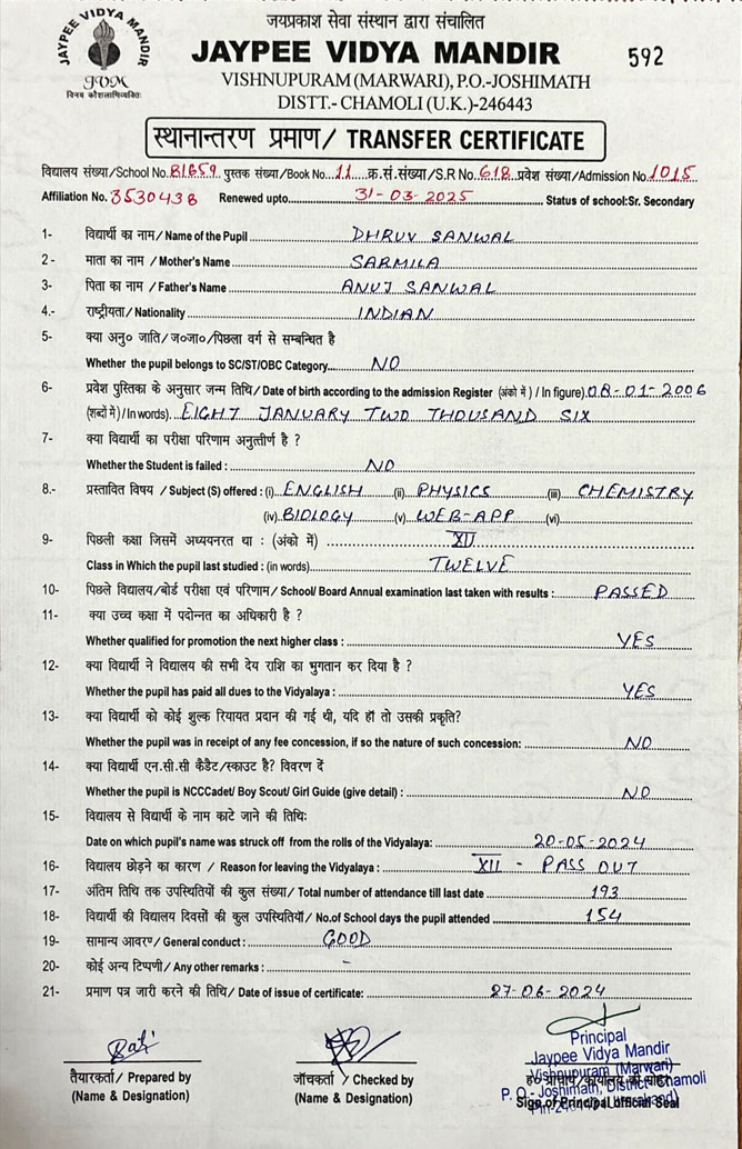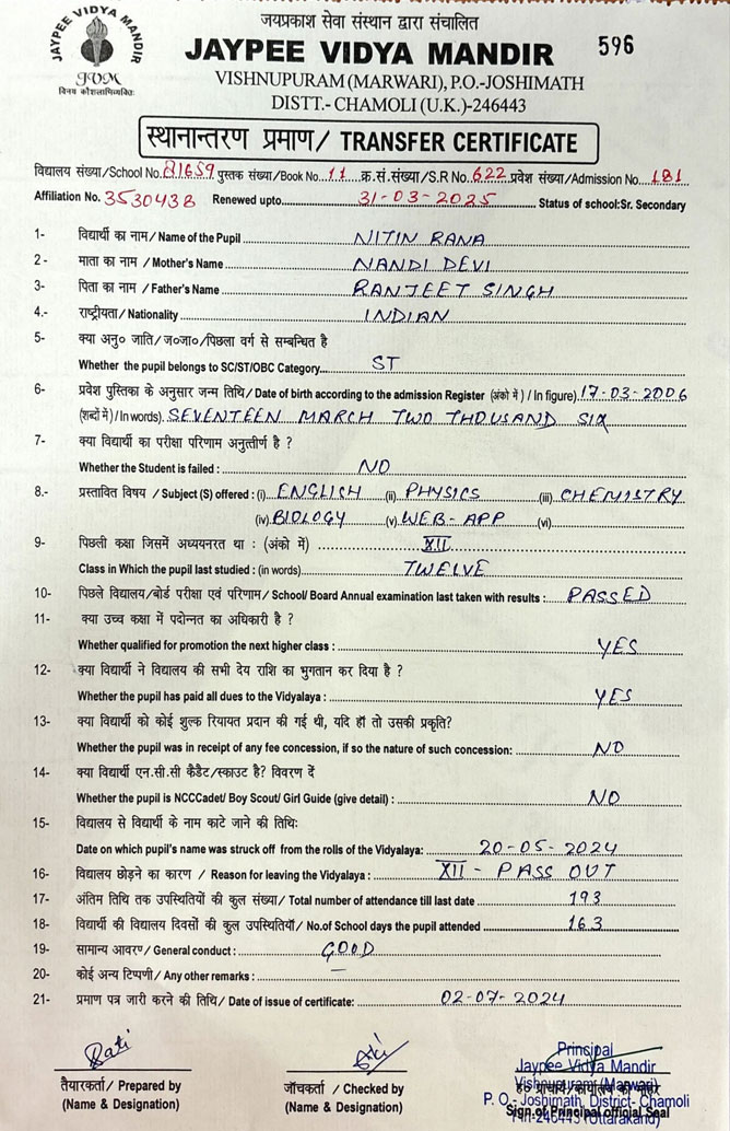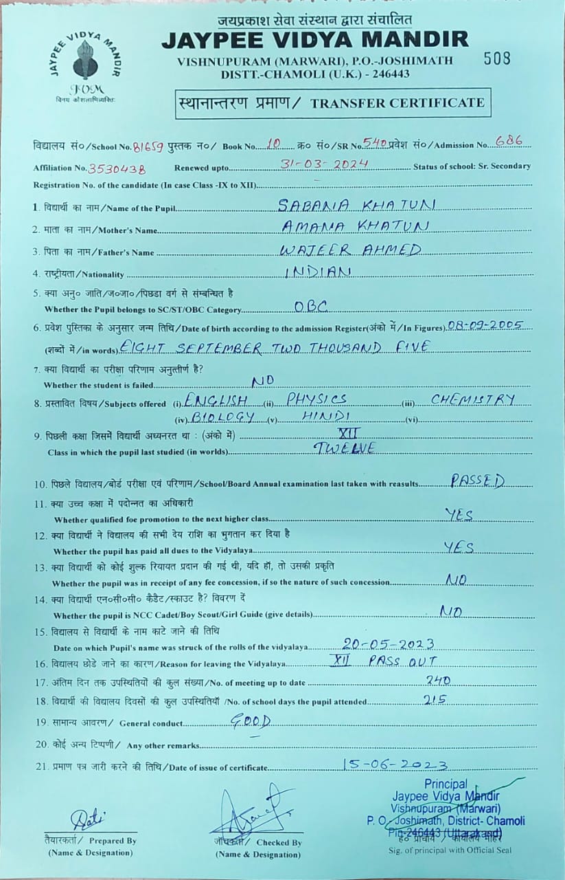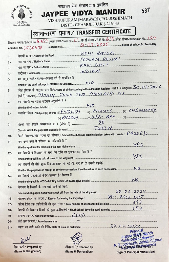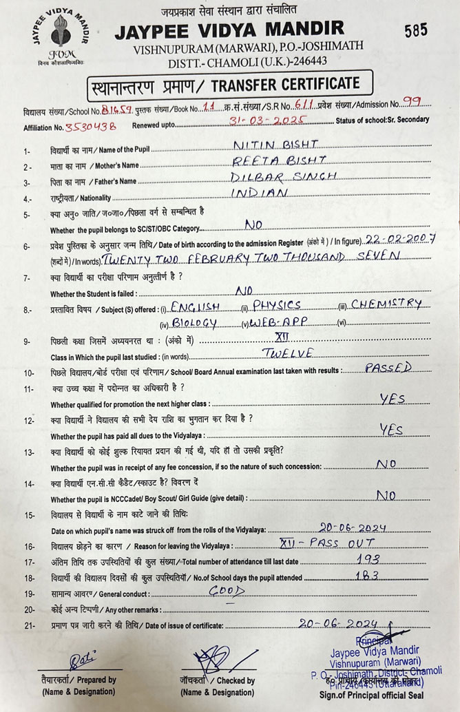 Tranfer Certificate |