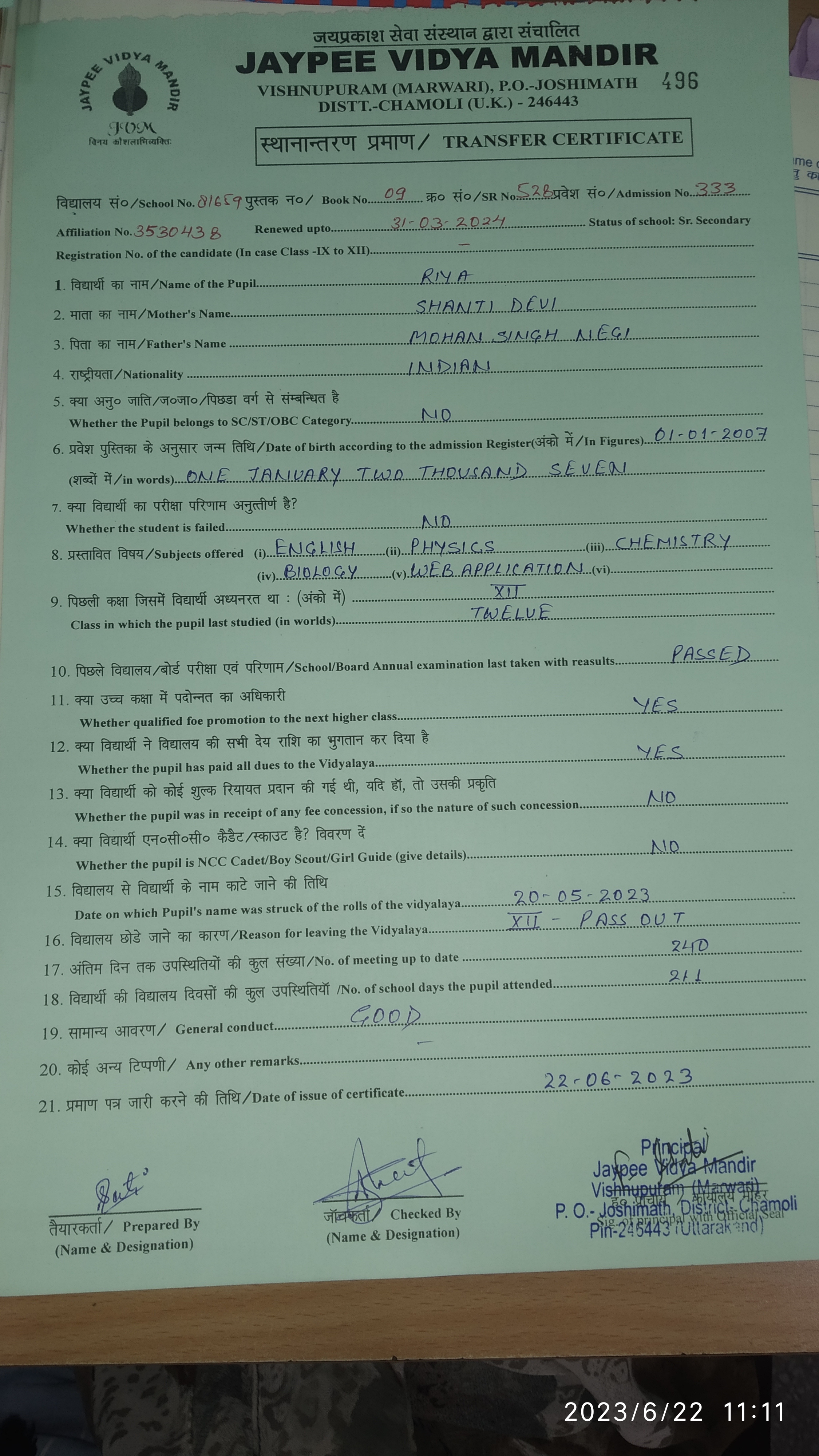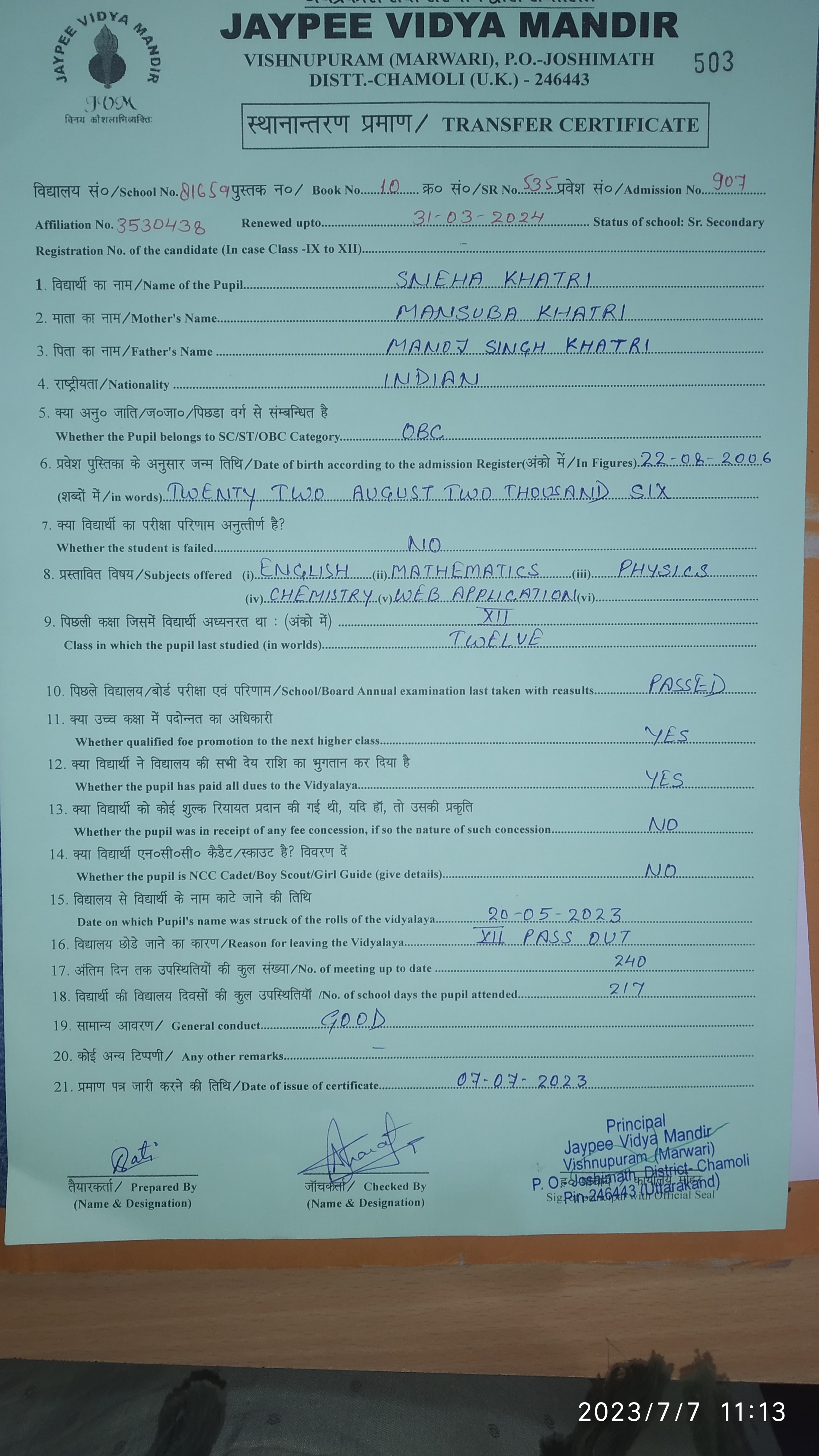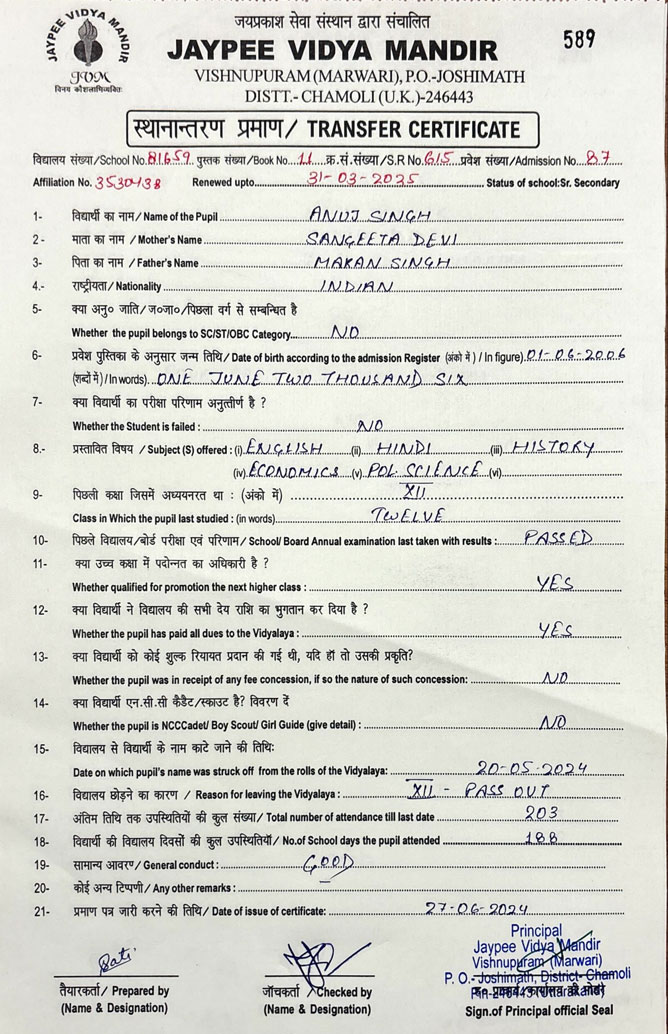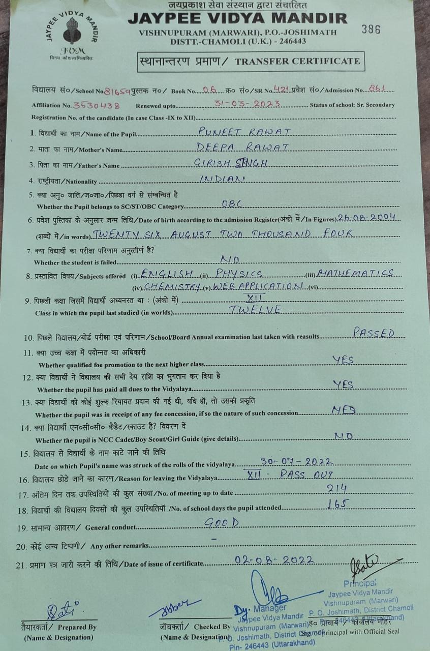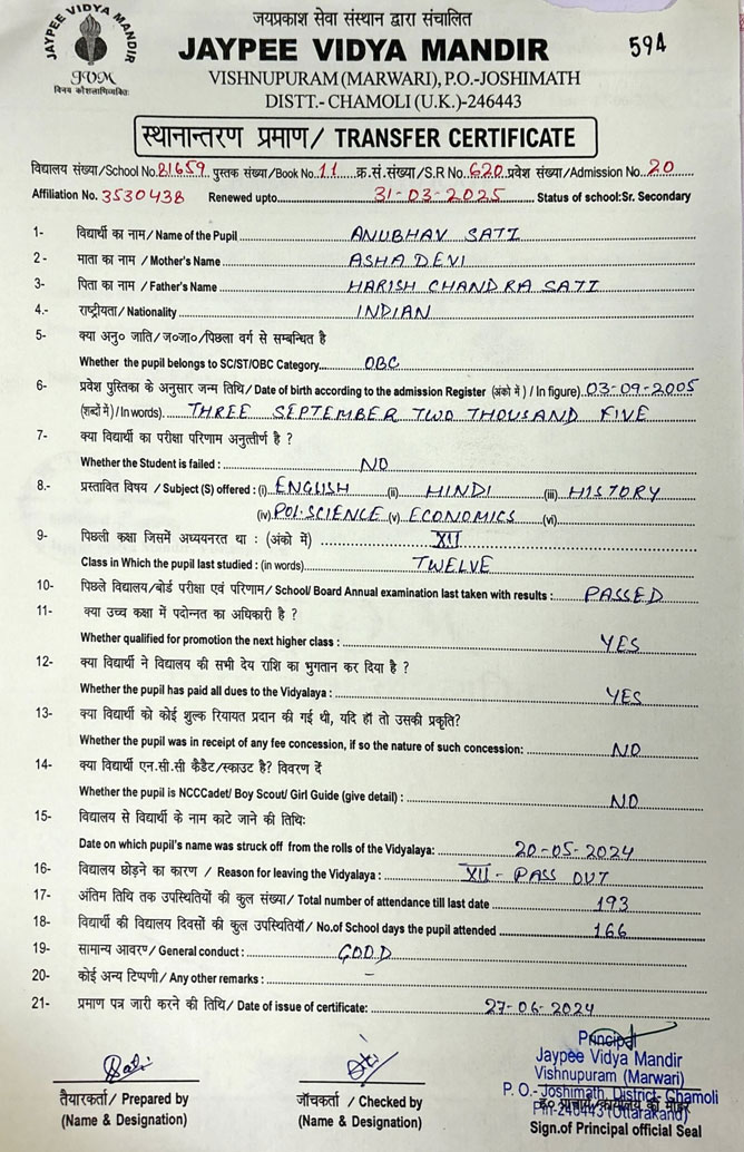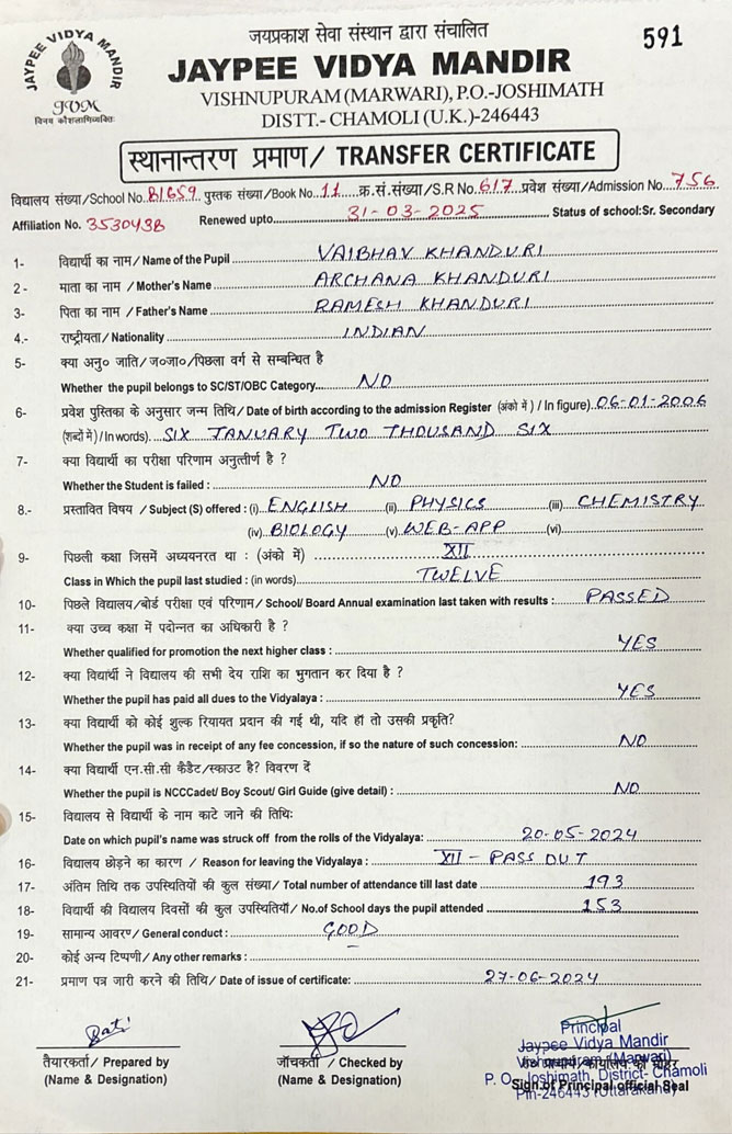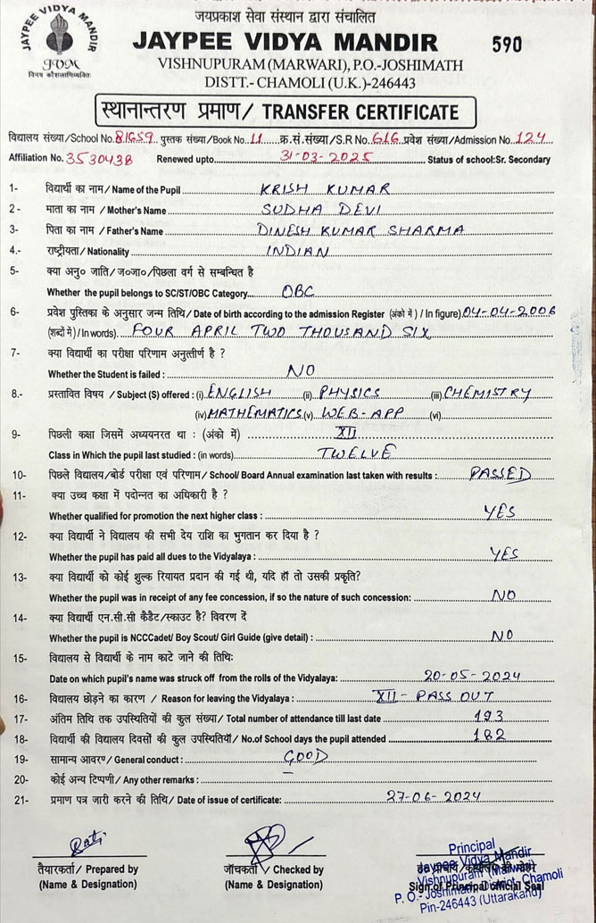 Tranfer Certificate |
