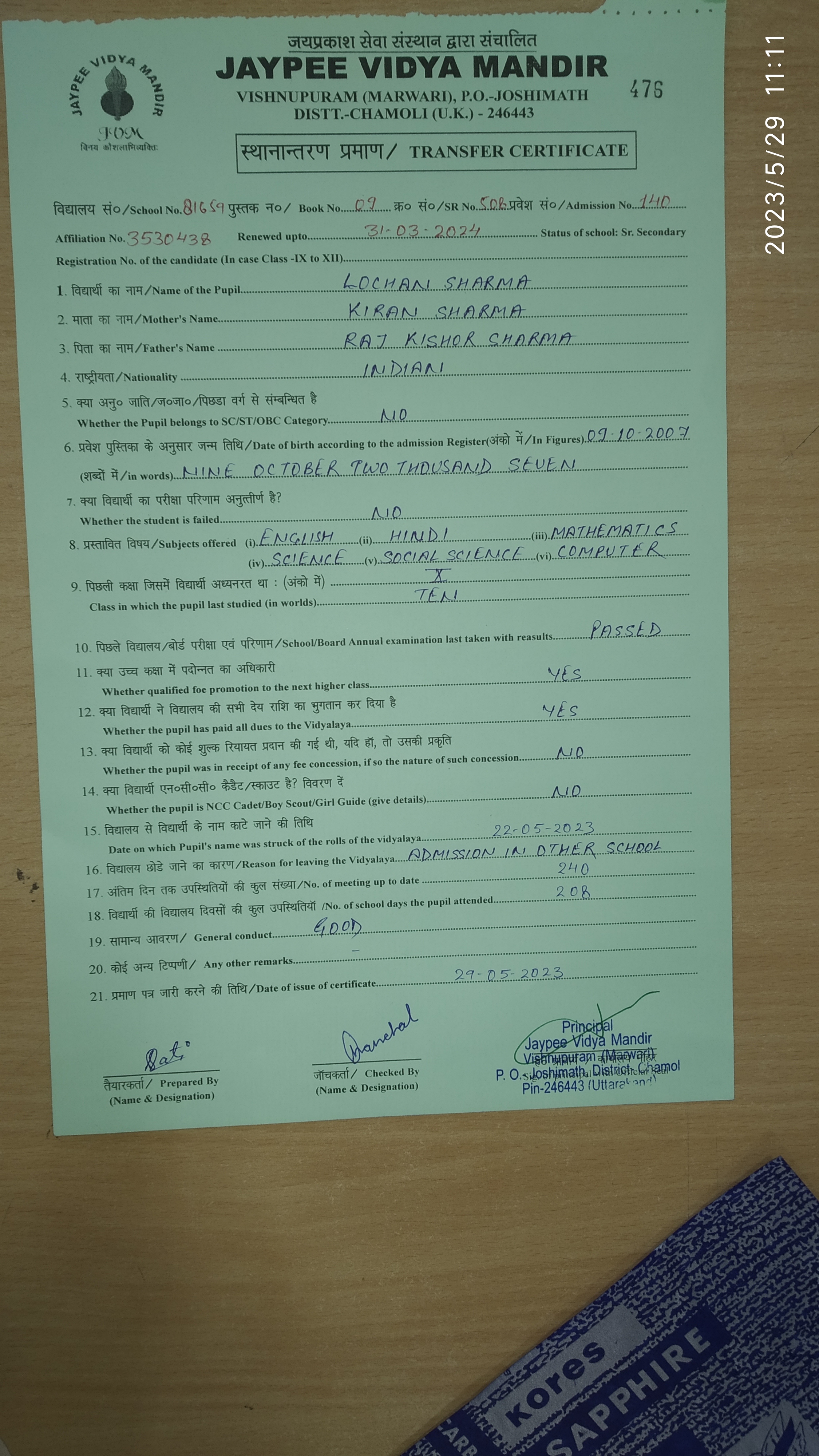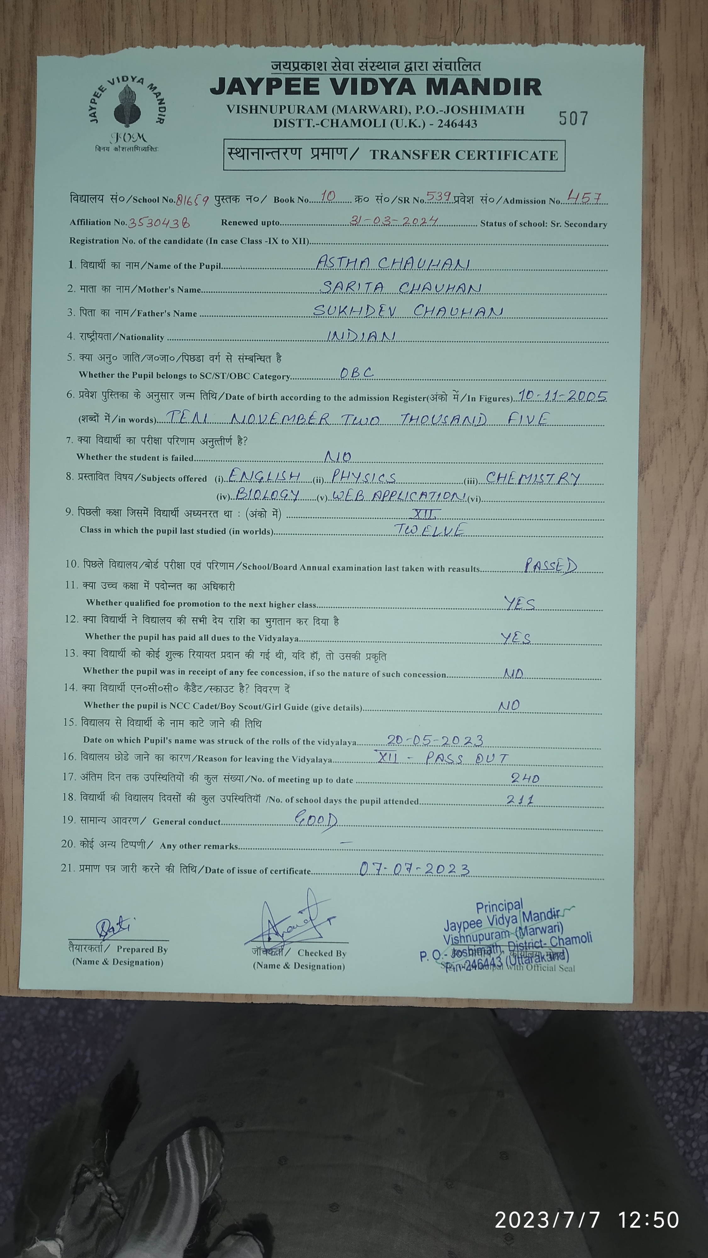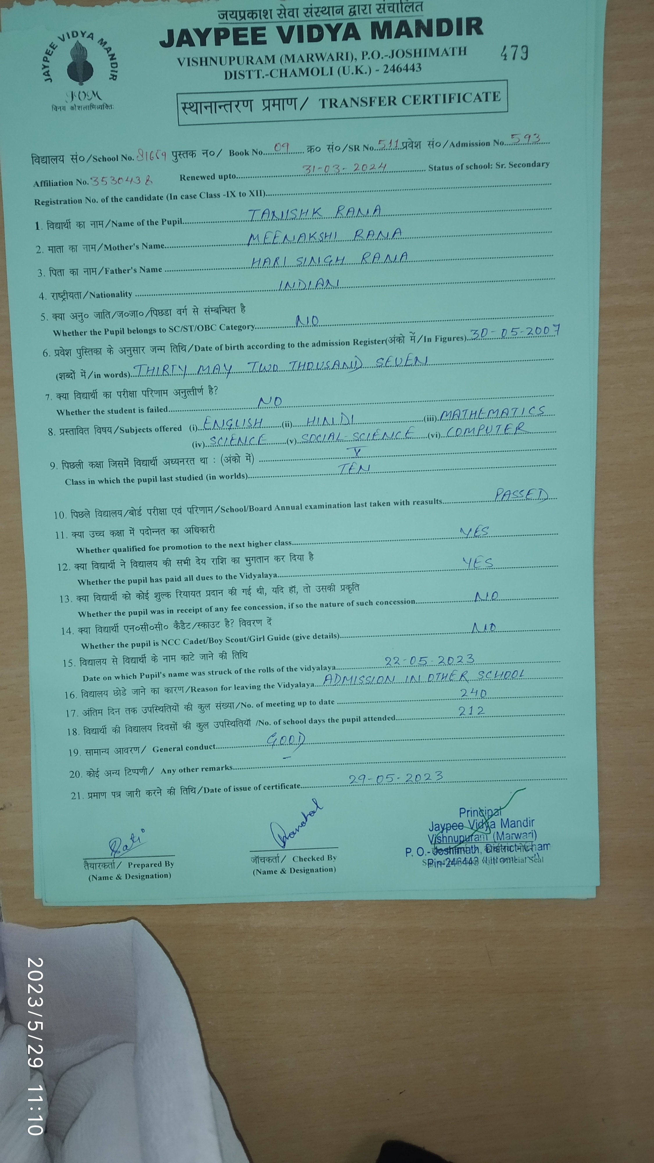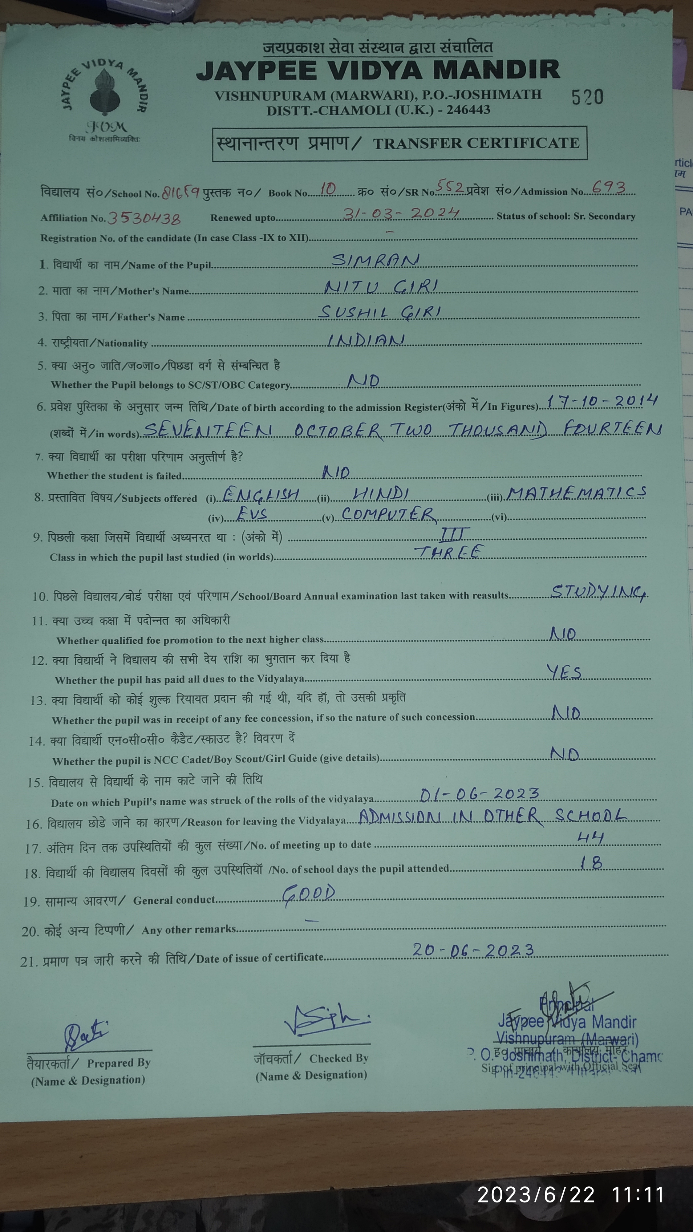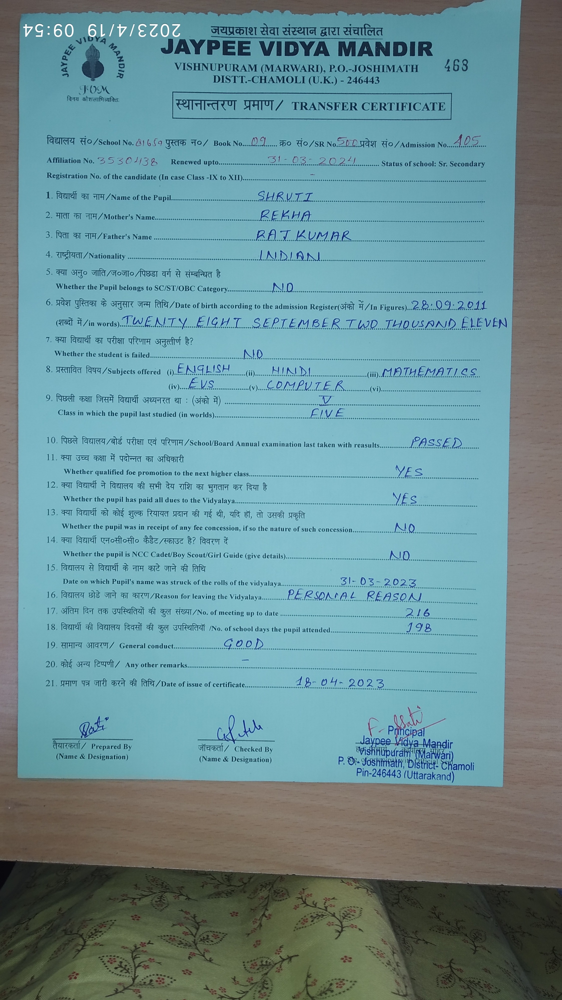 Tranfer Certificate |