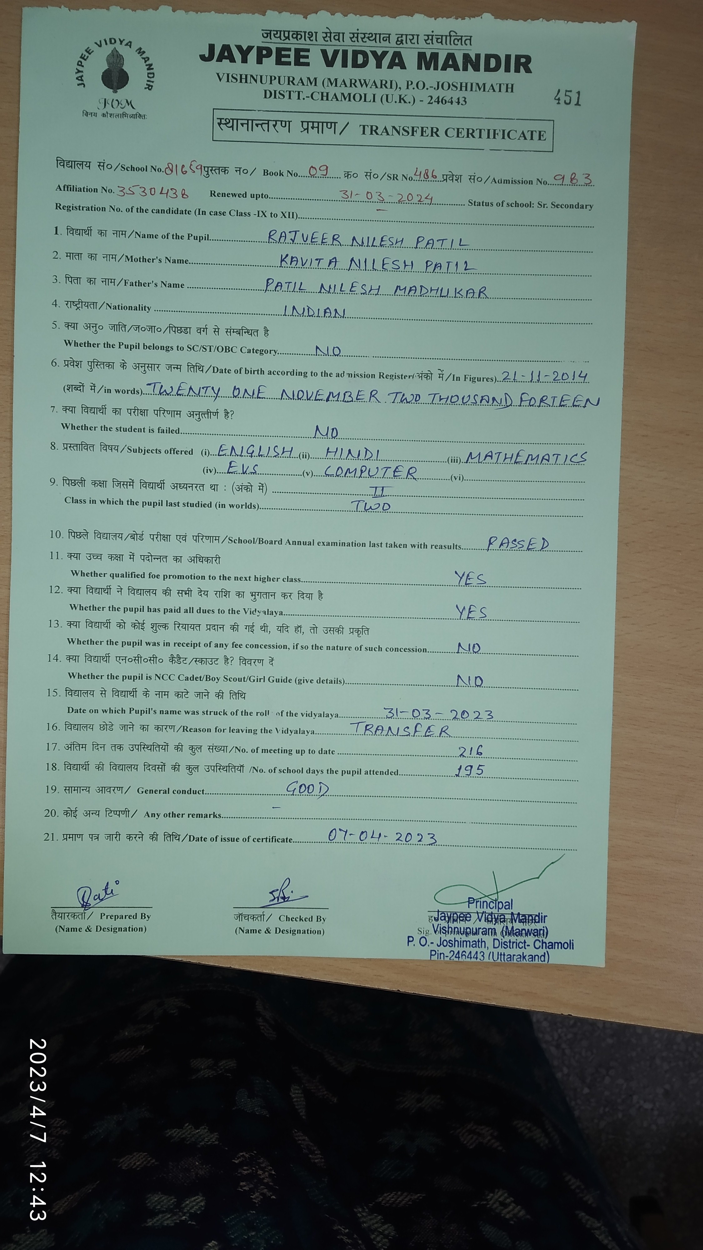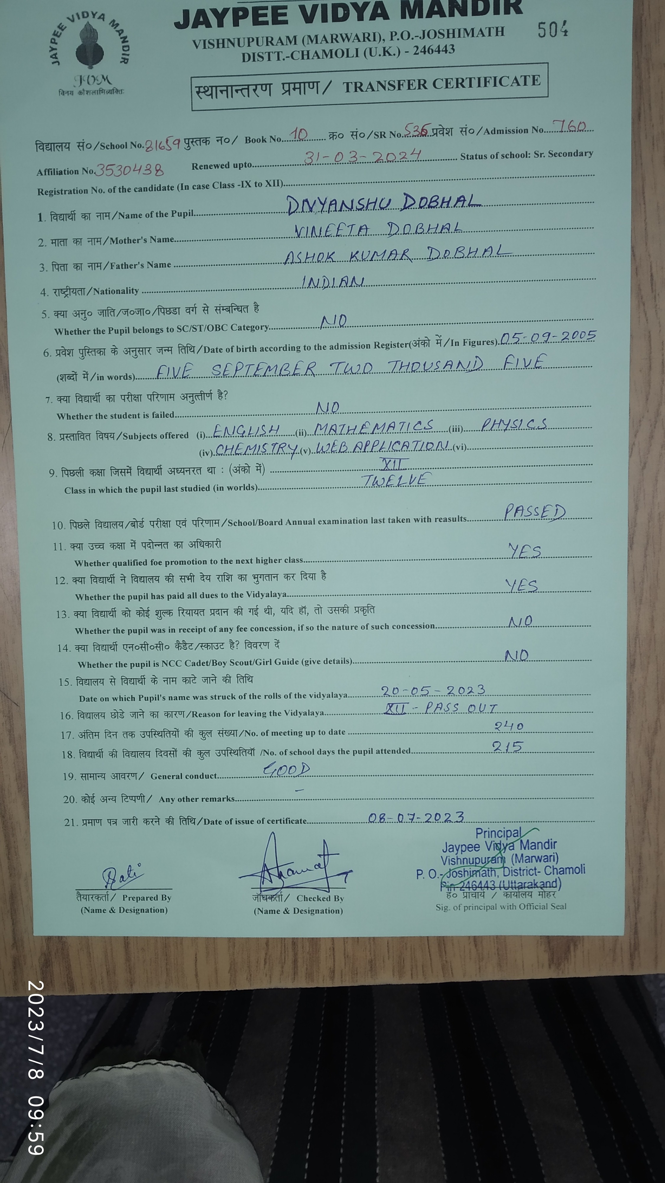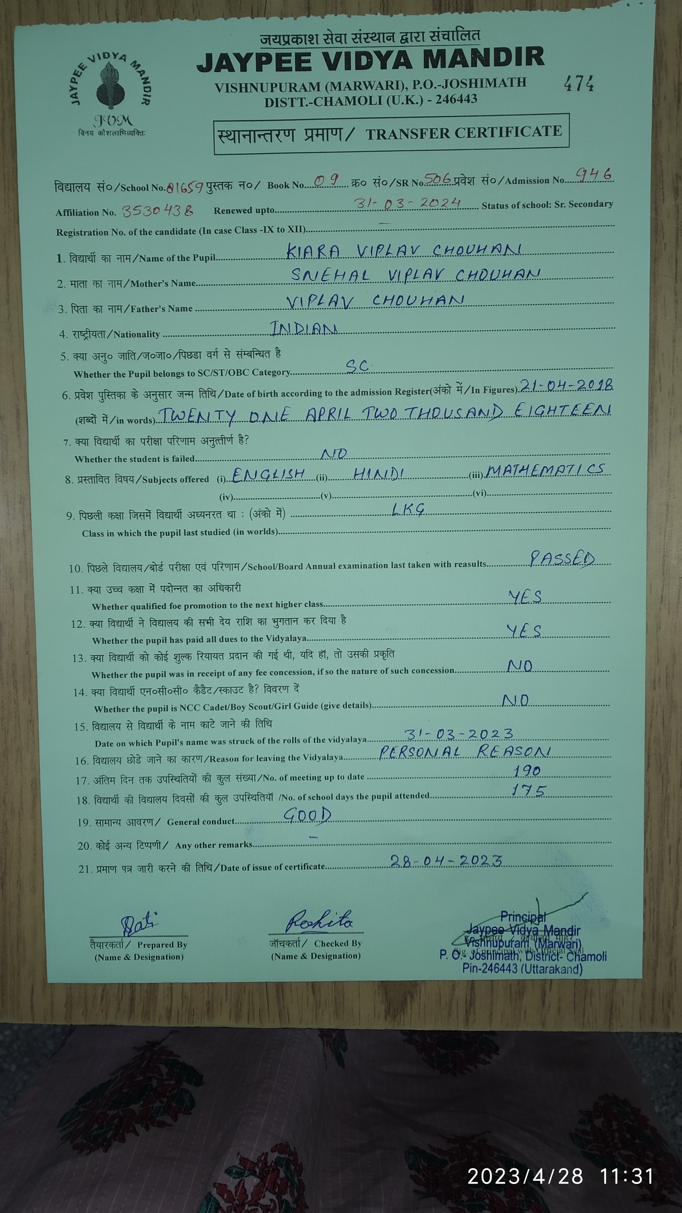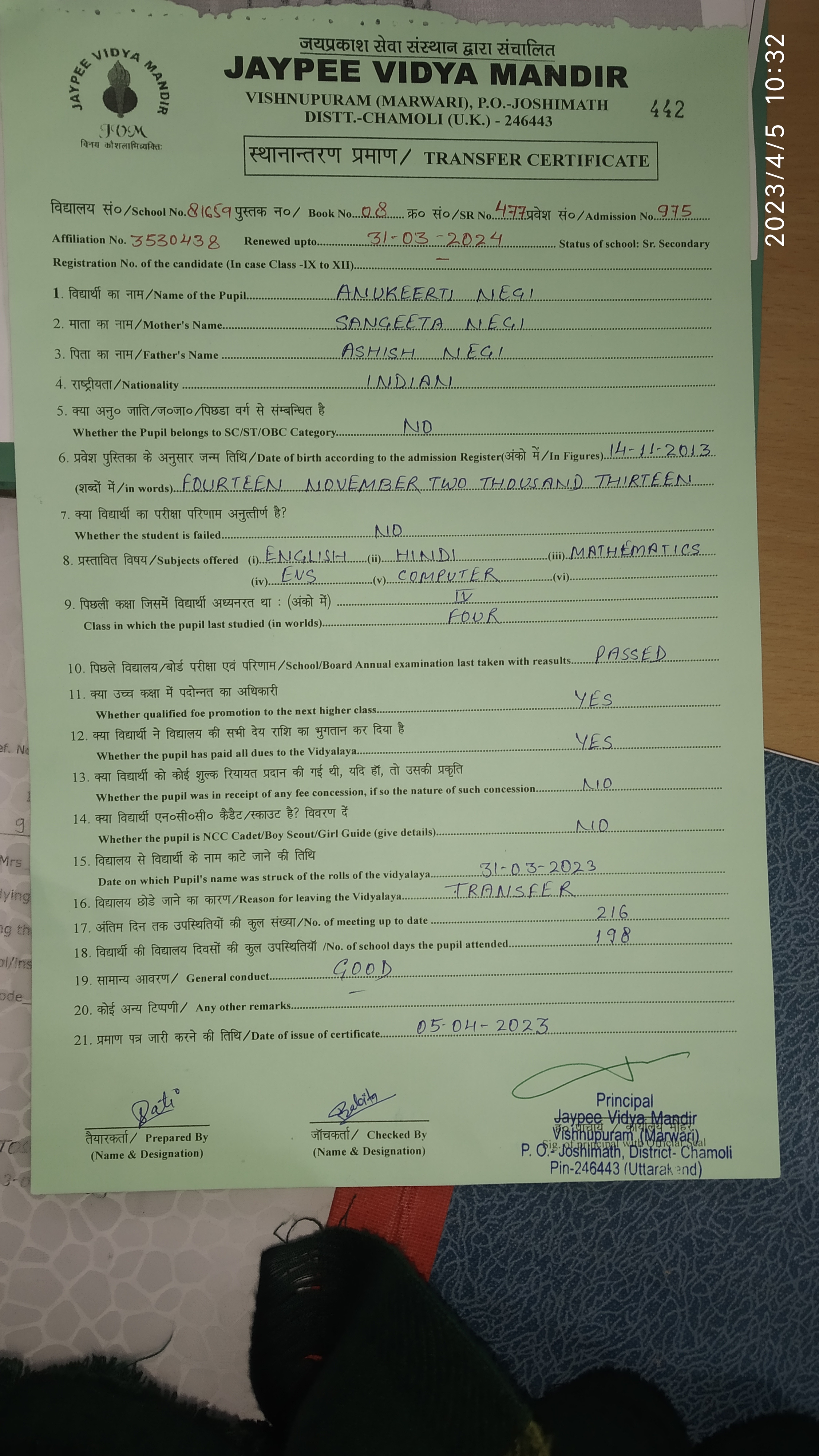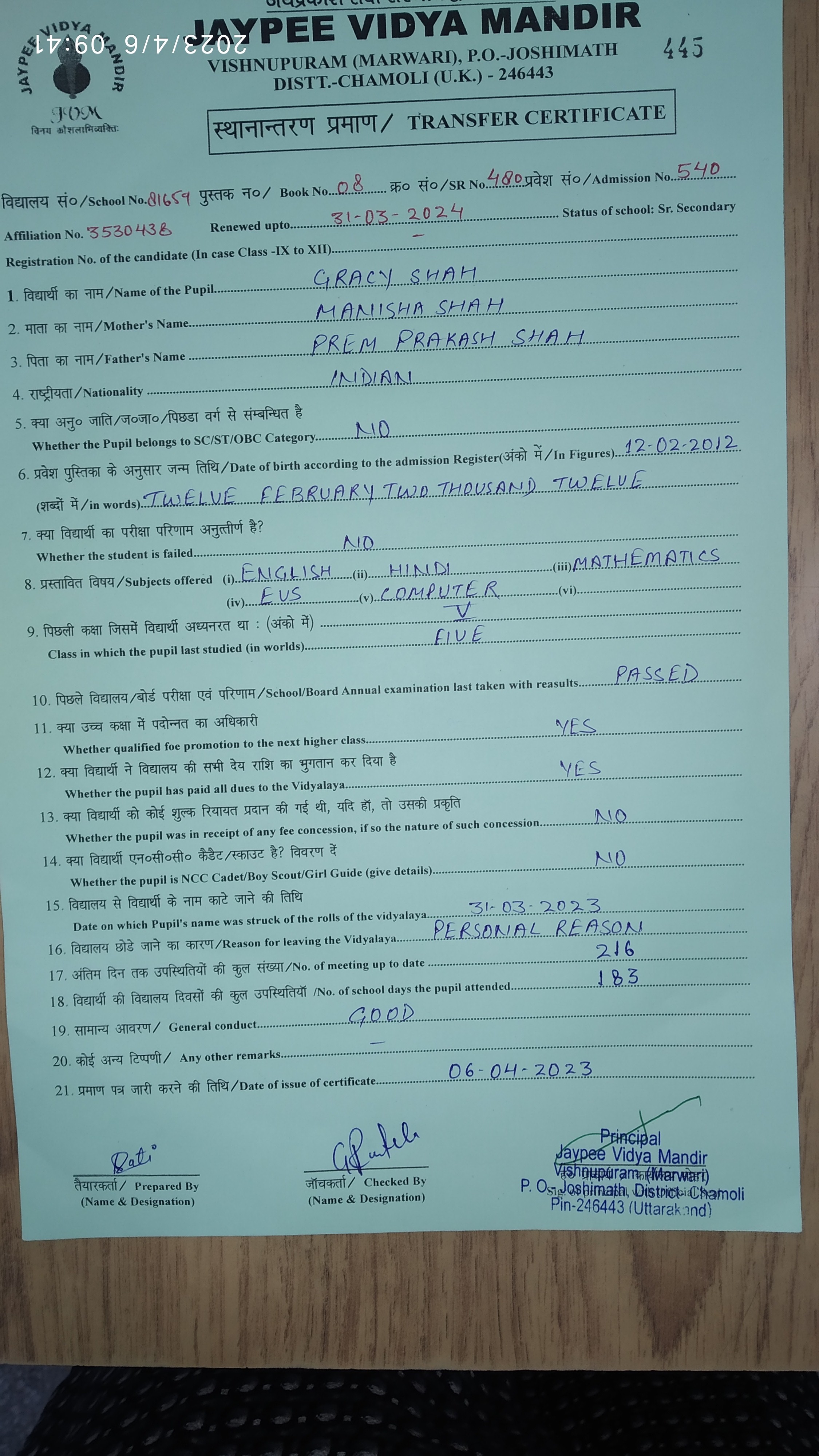 Tranfer Certificate |