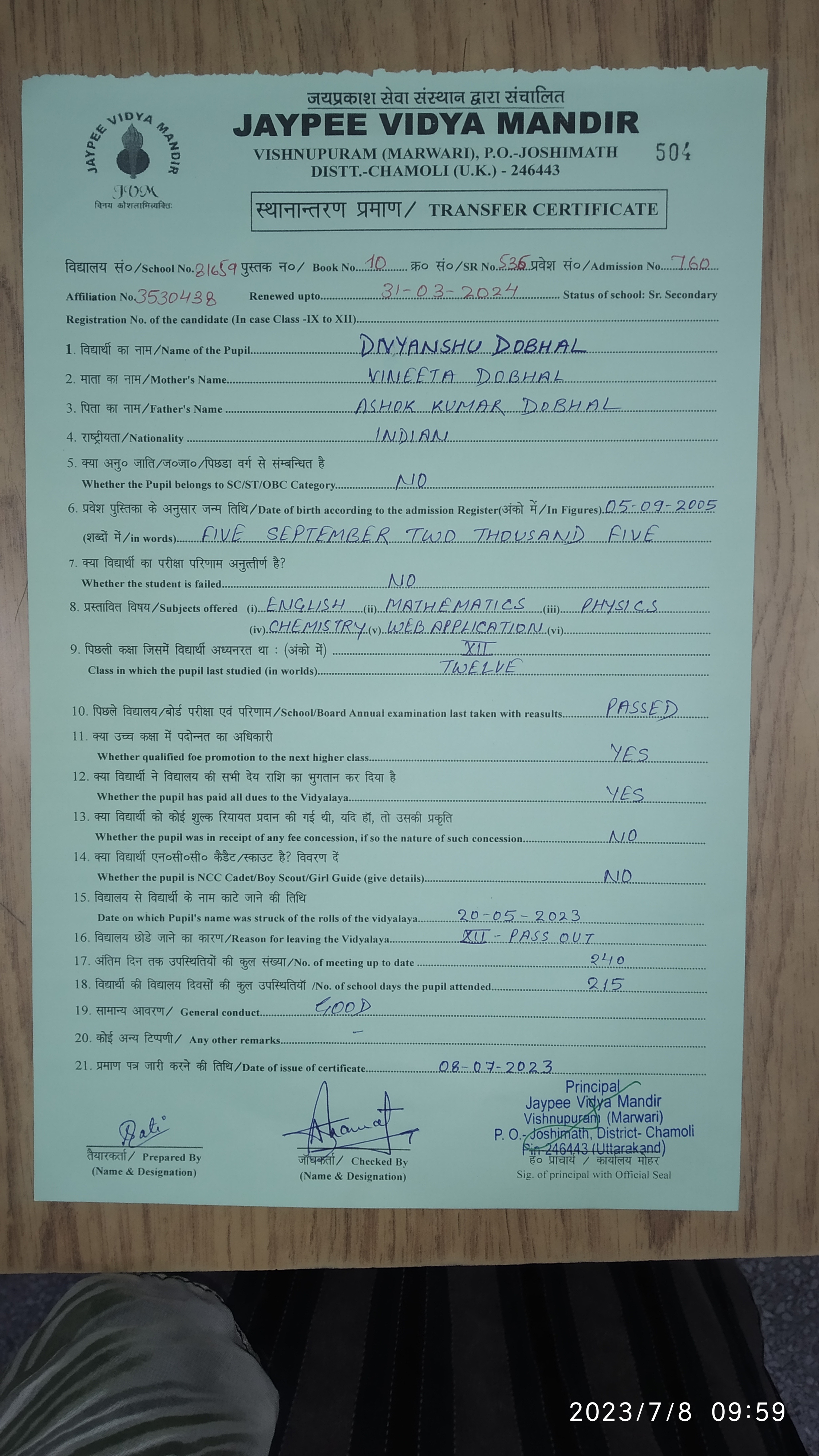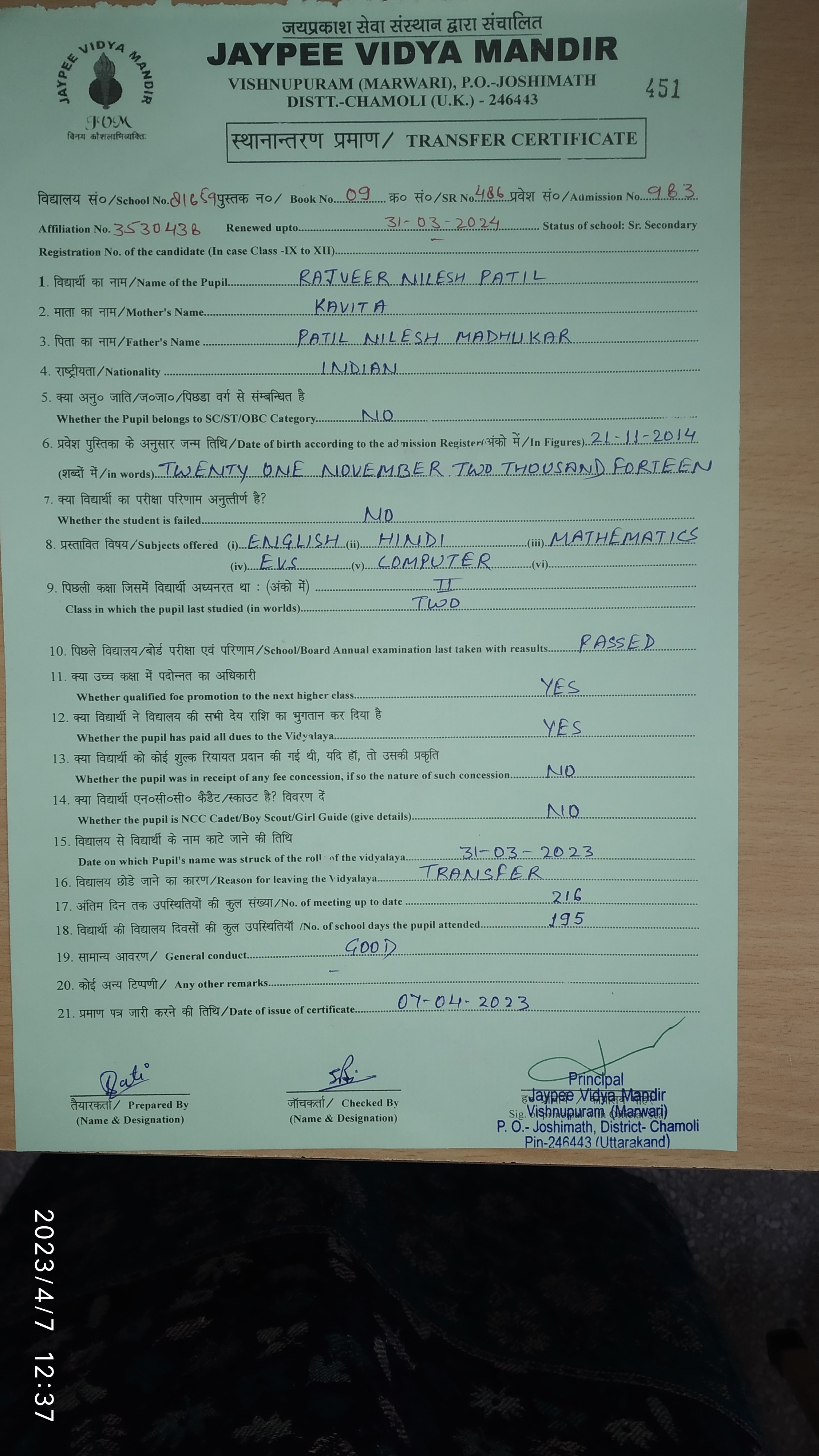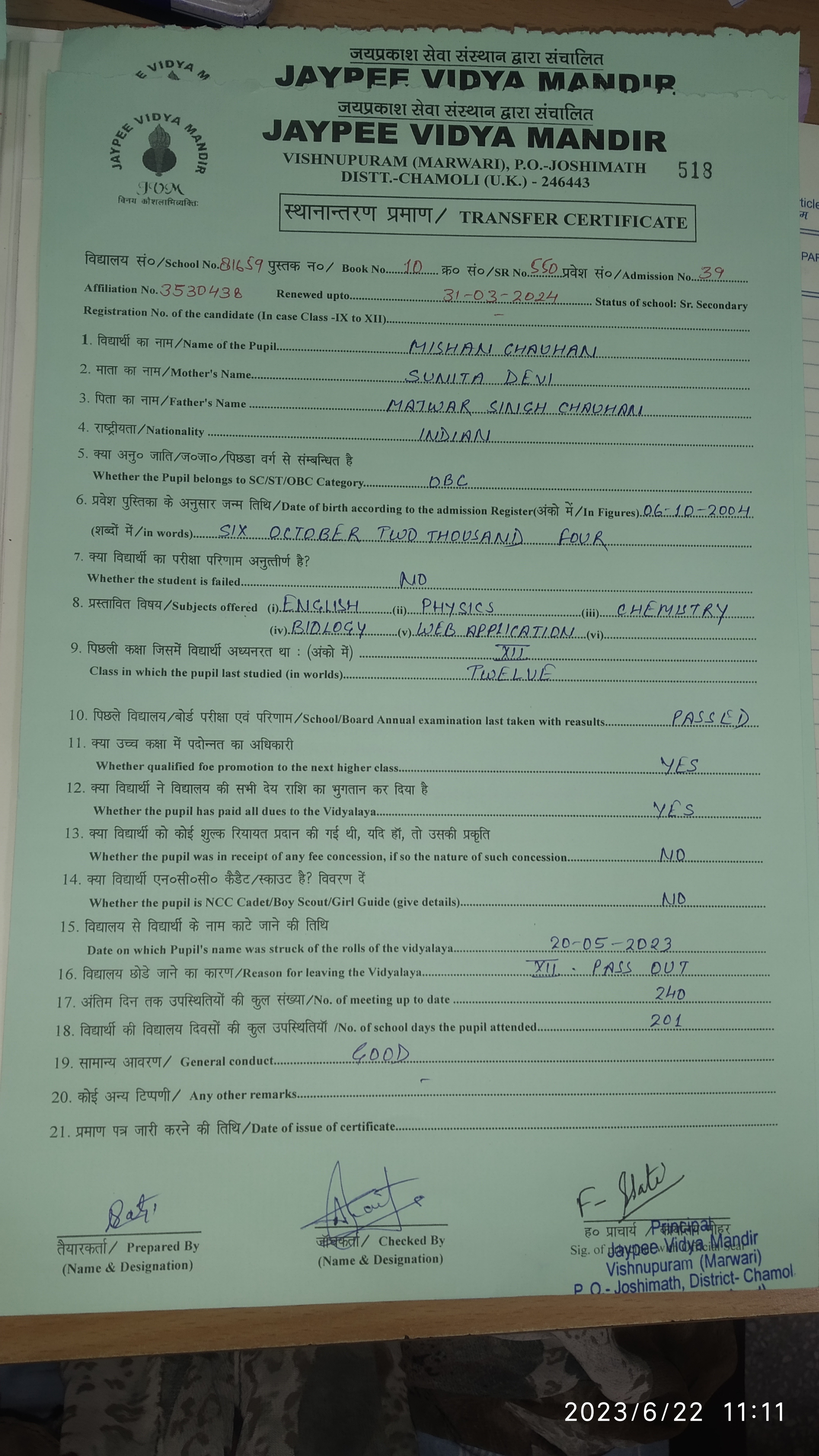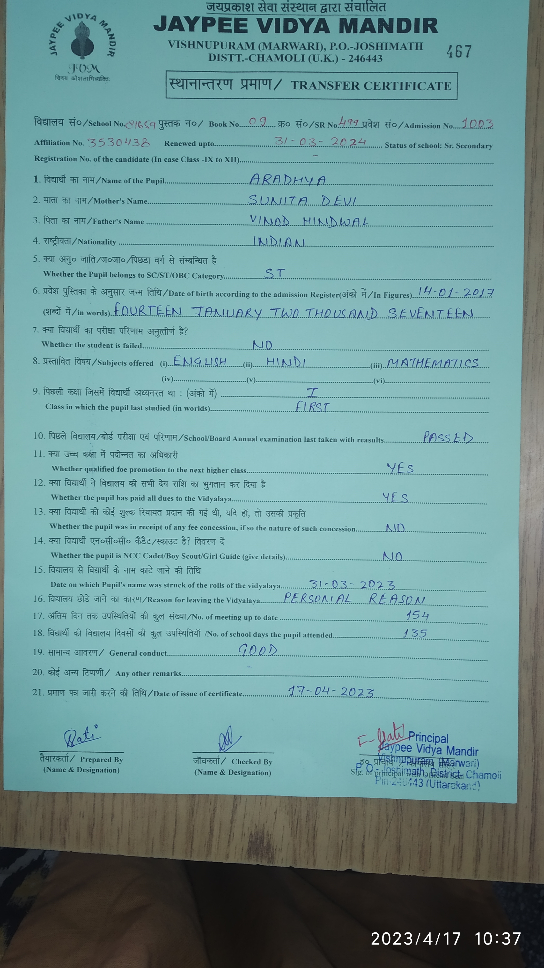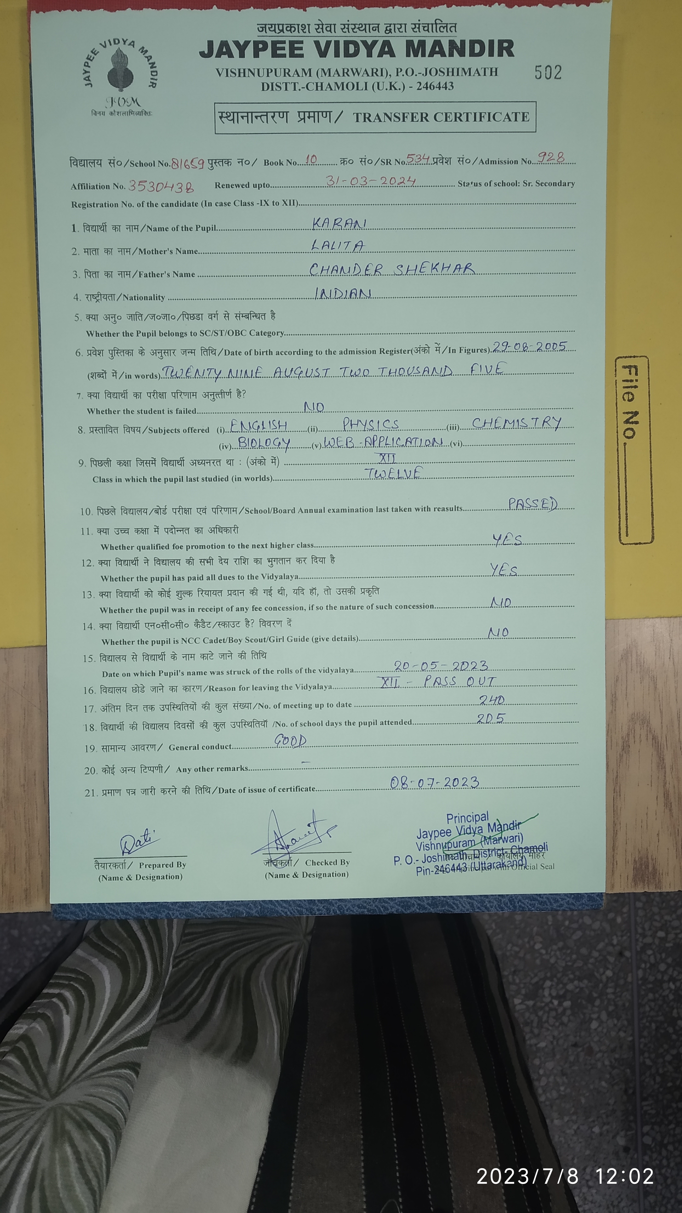 Tranfer Certificate |