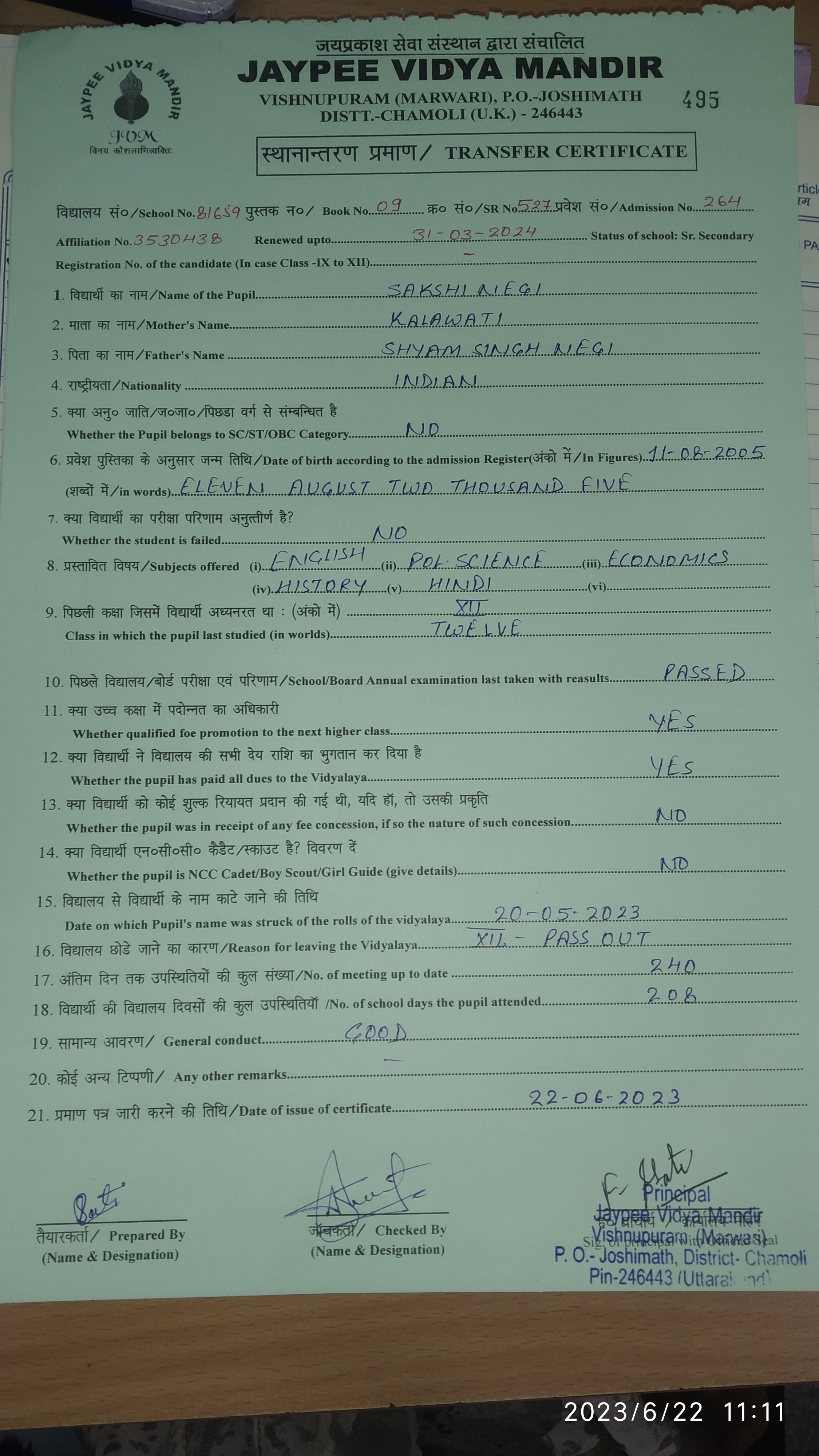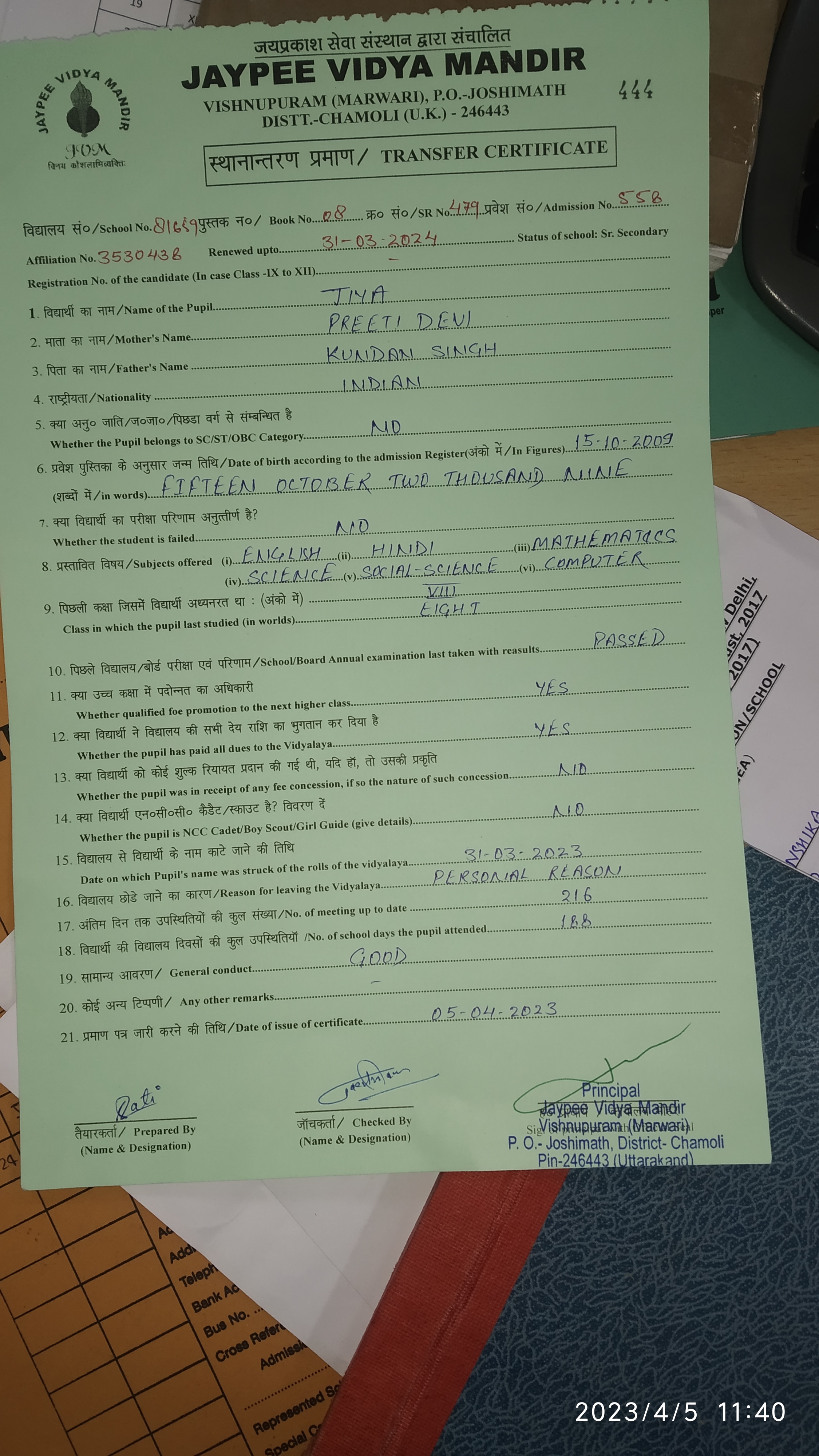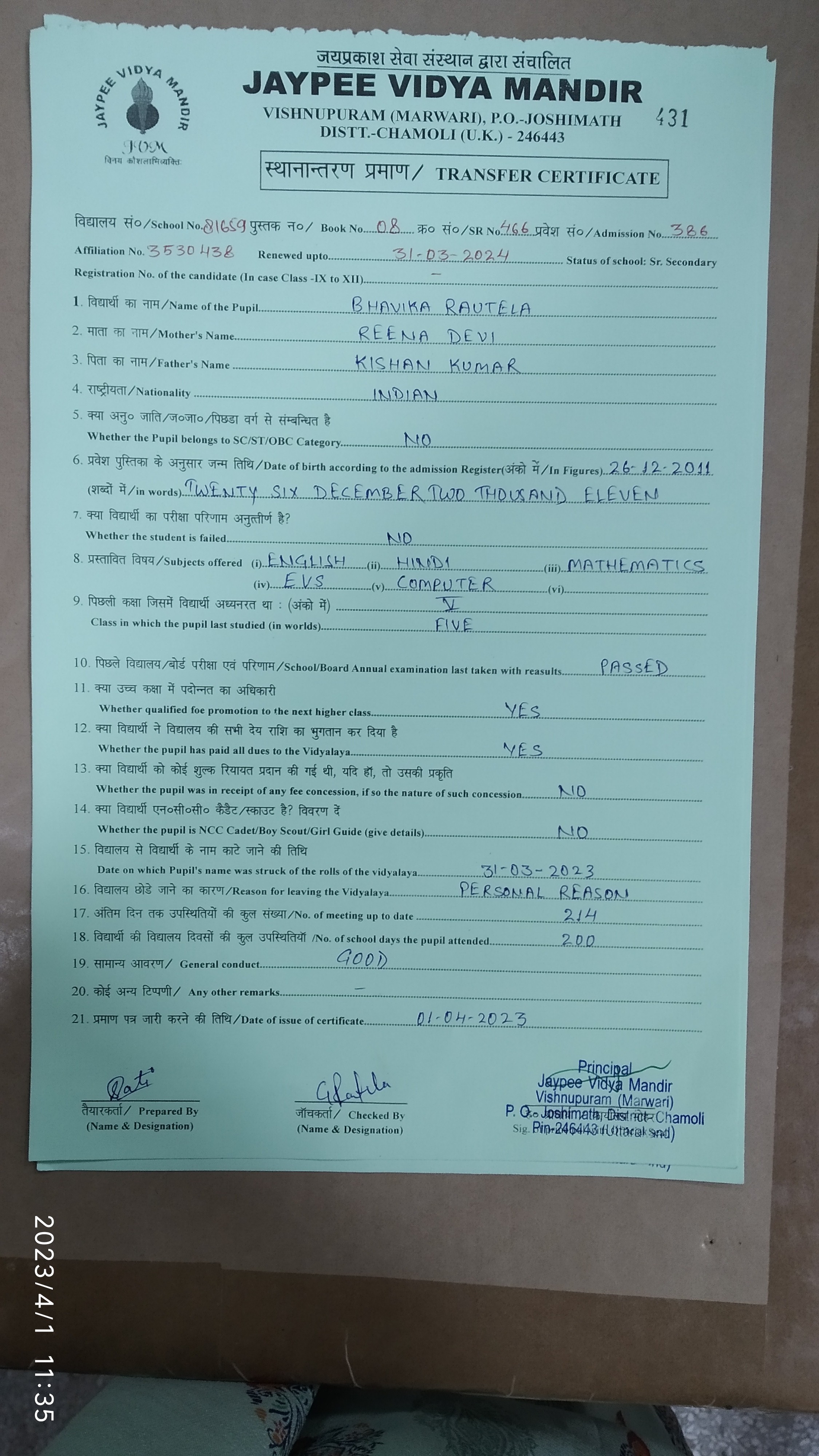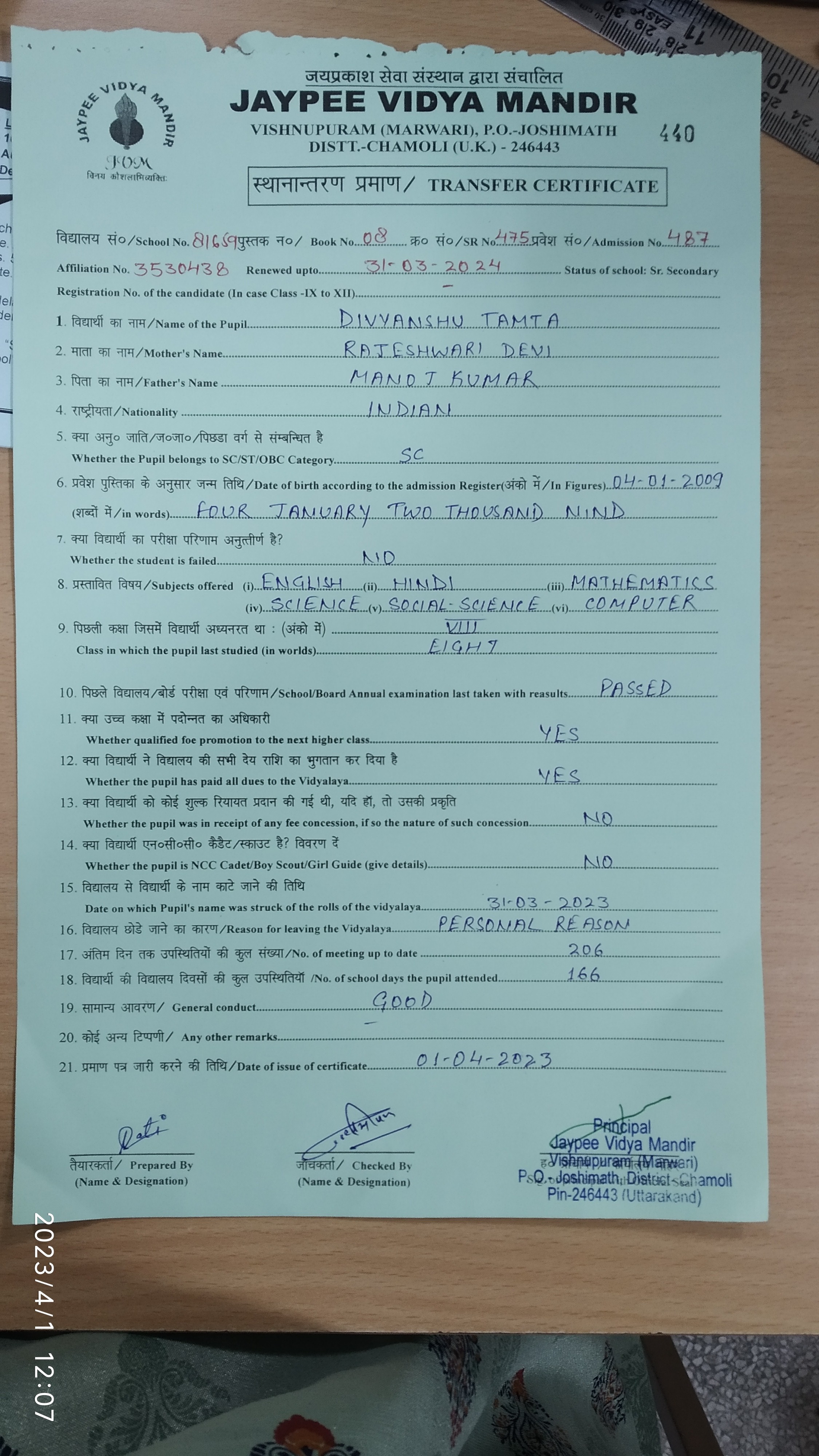 Tranfer Certificate |