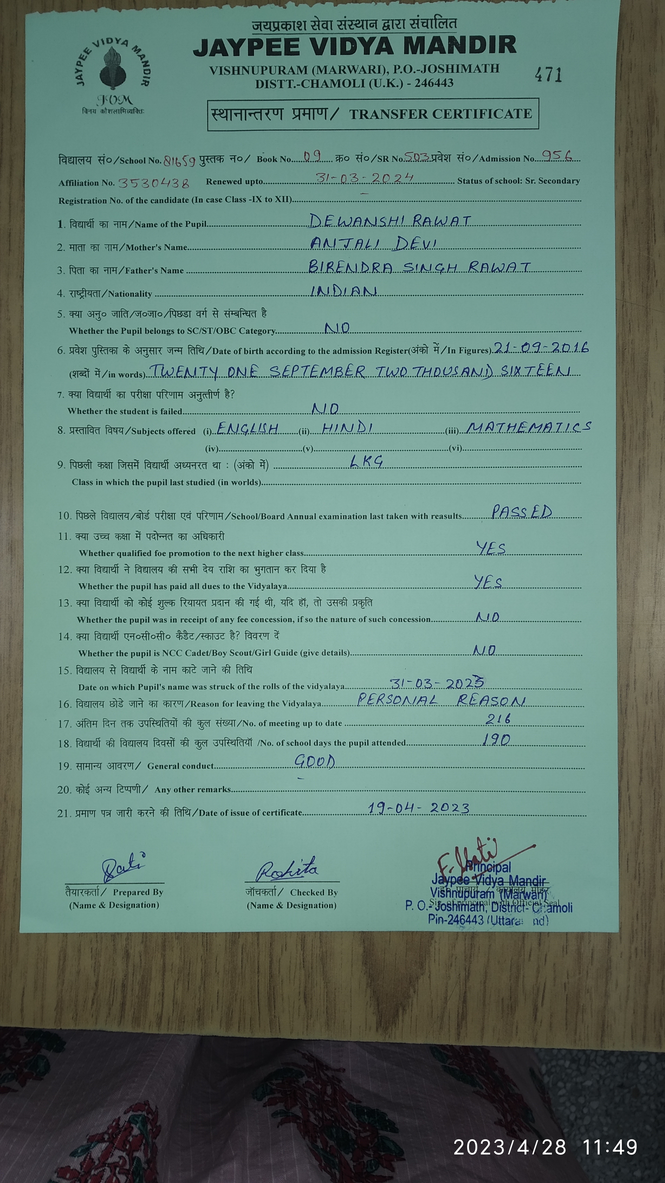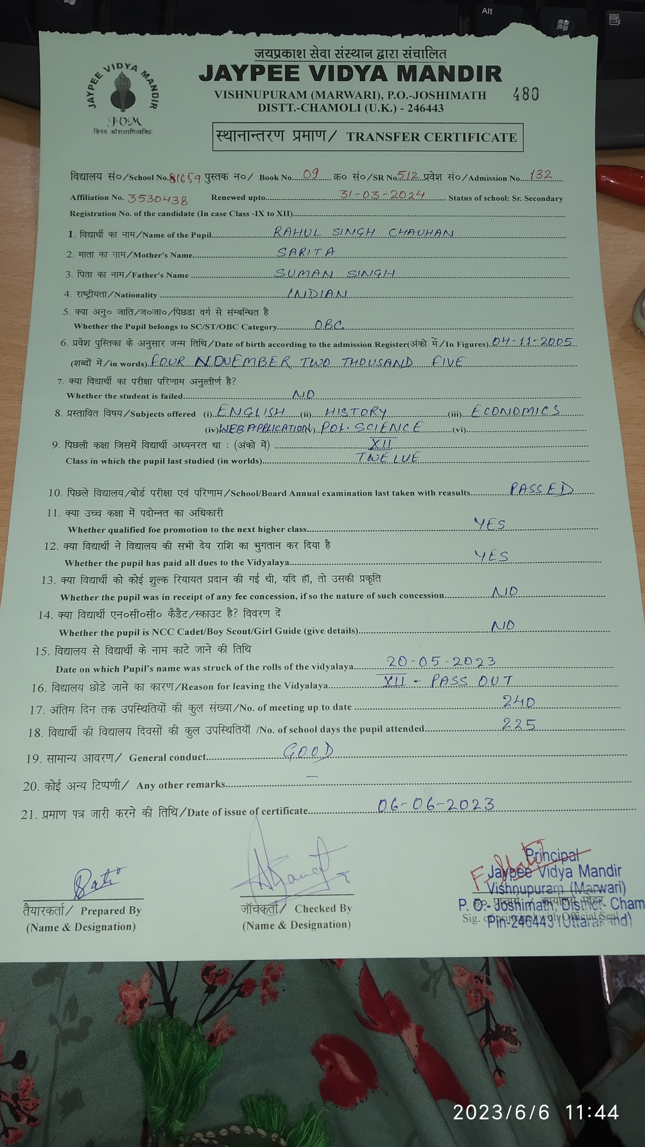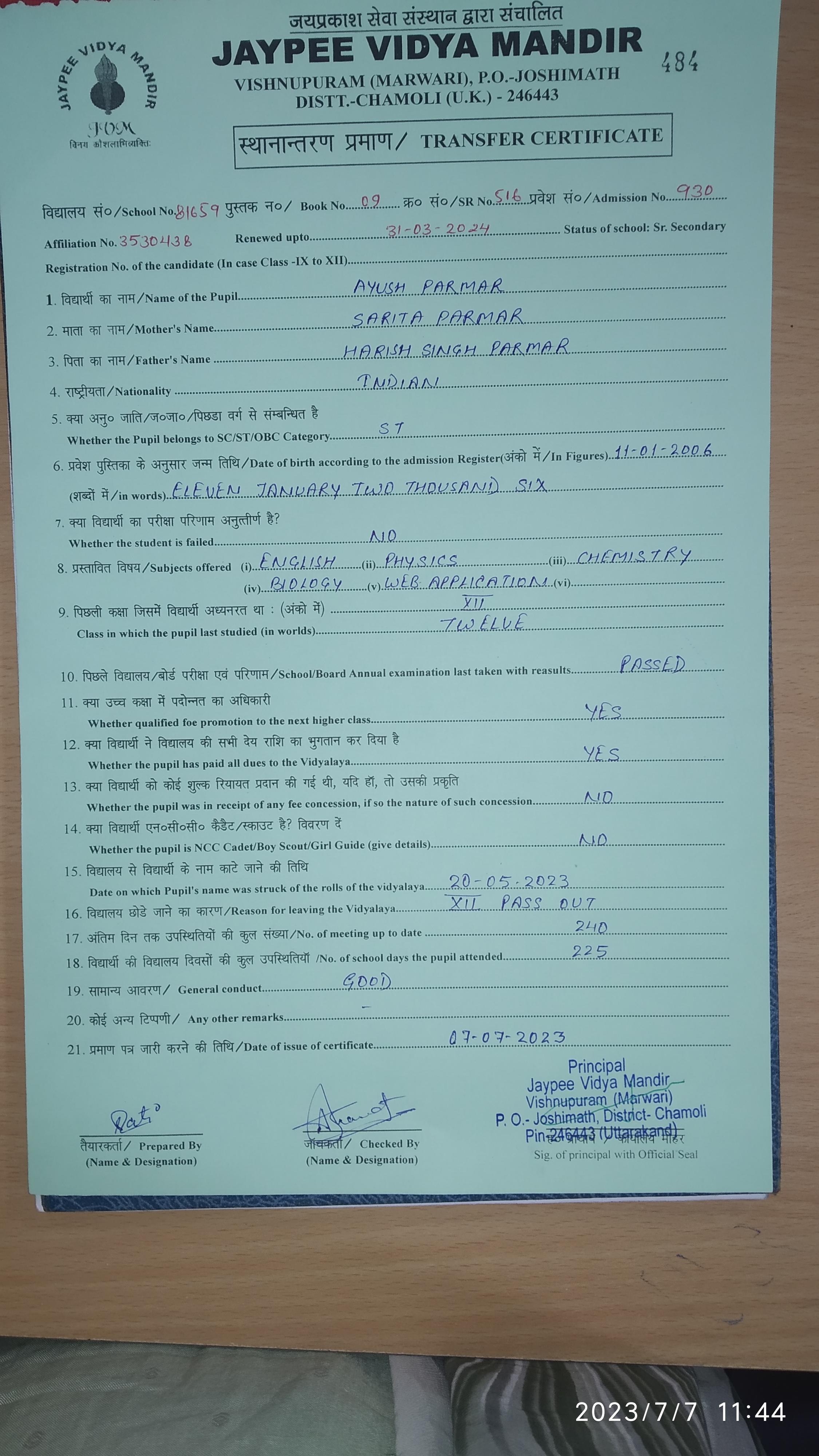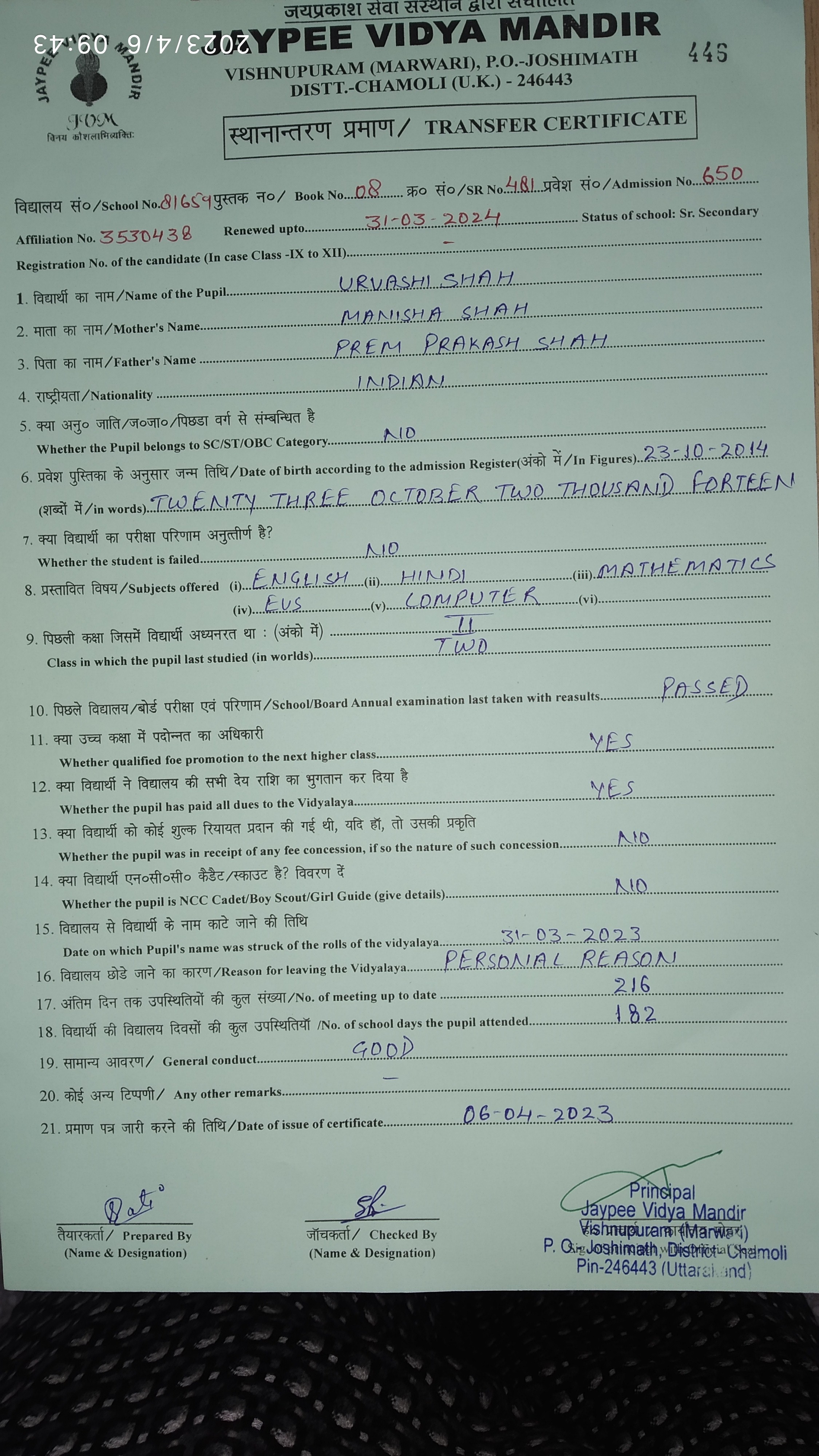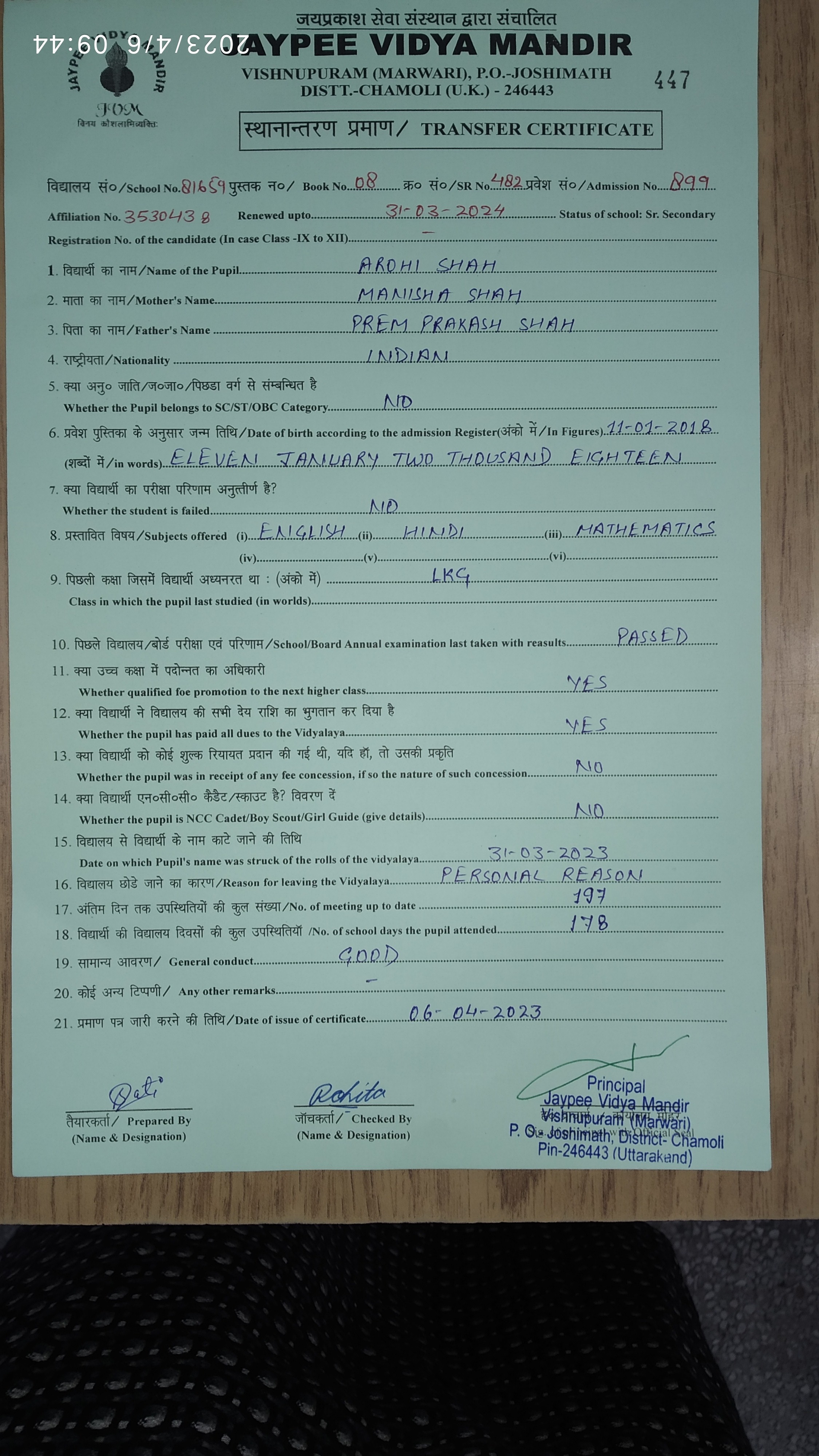 Tranfer Certificate |