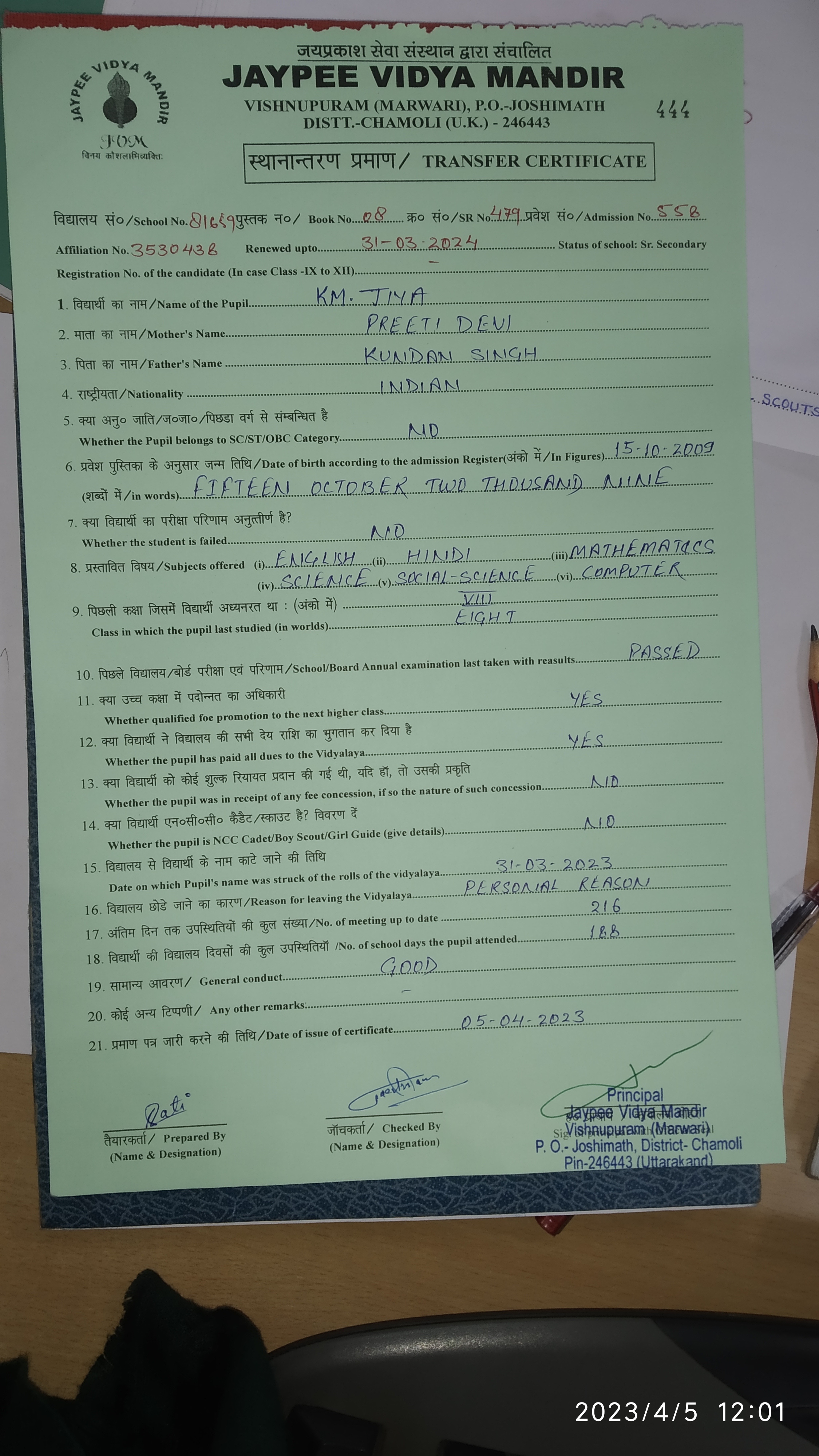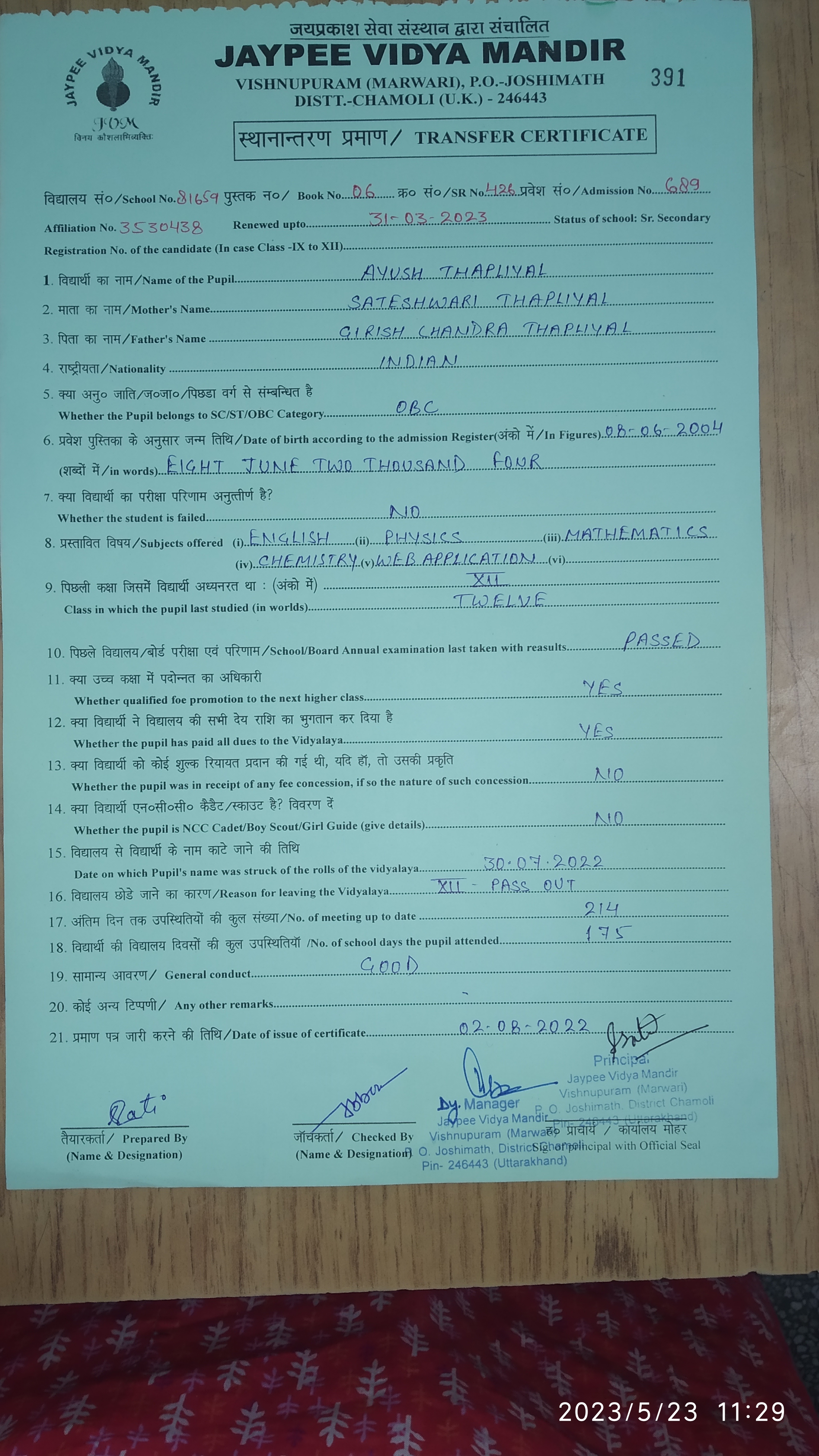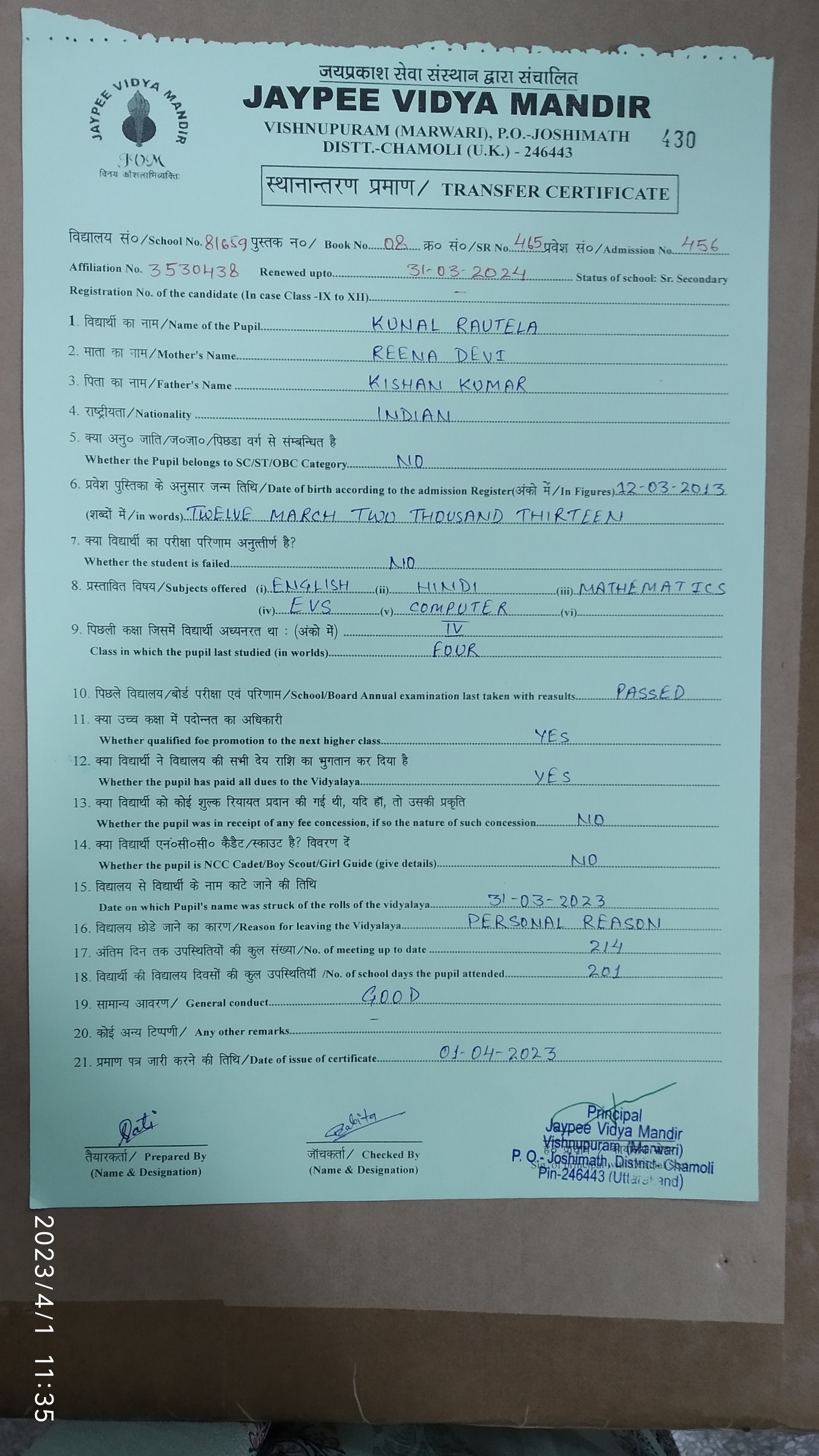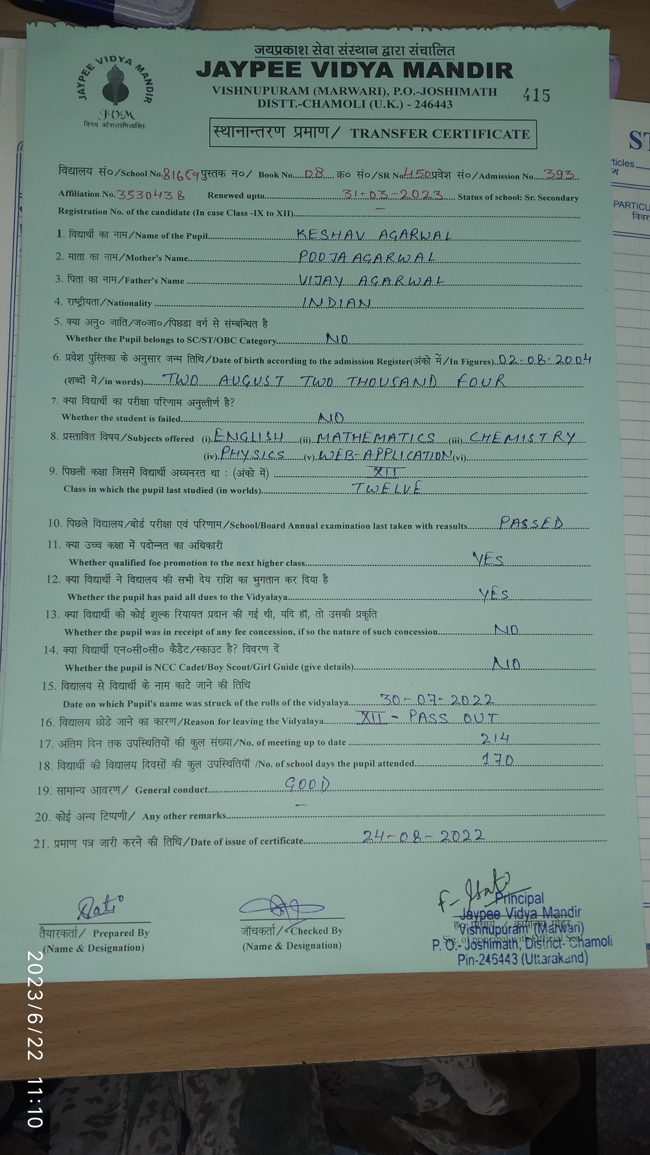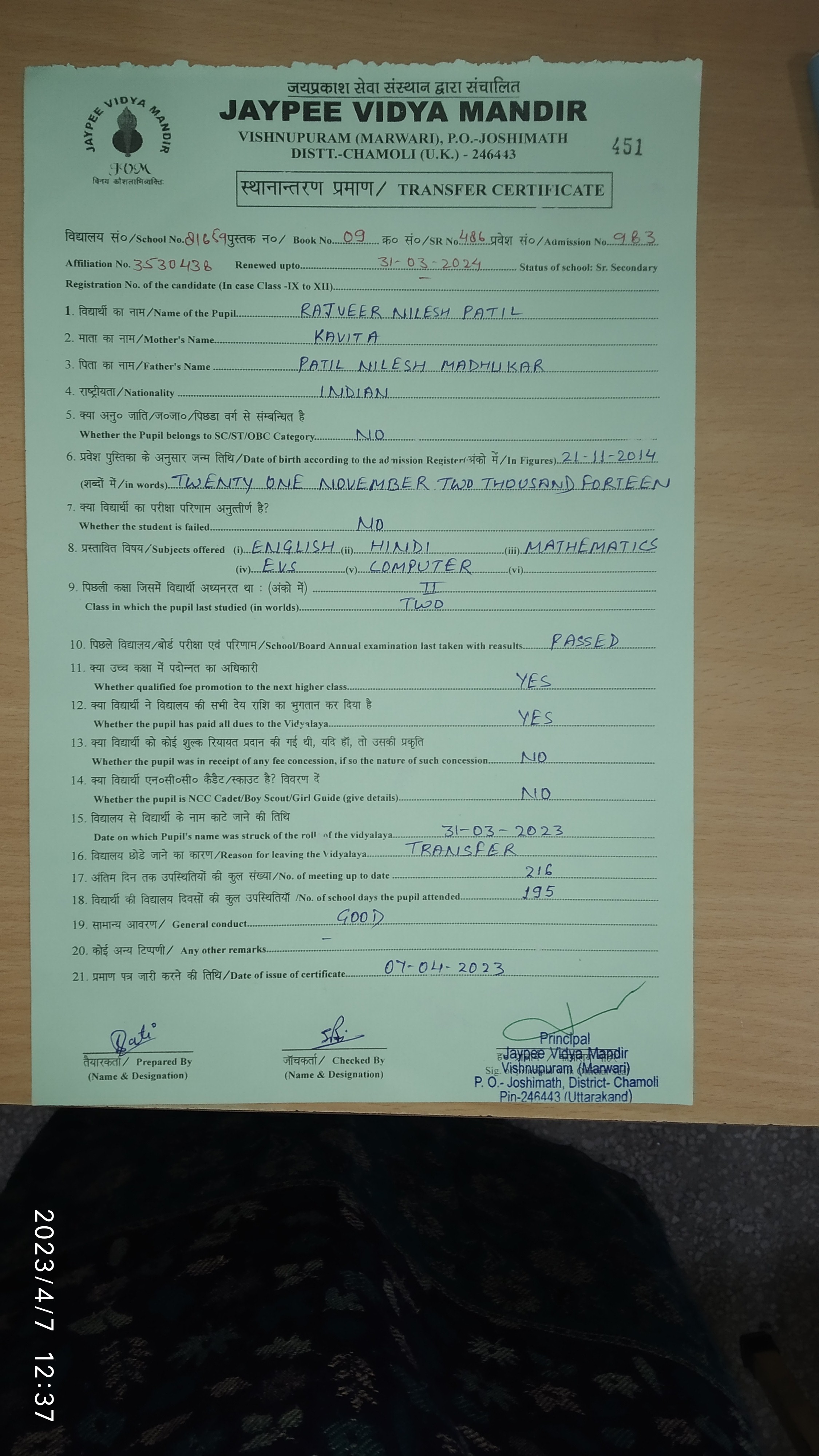 Tranfer Certificate |