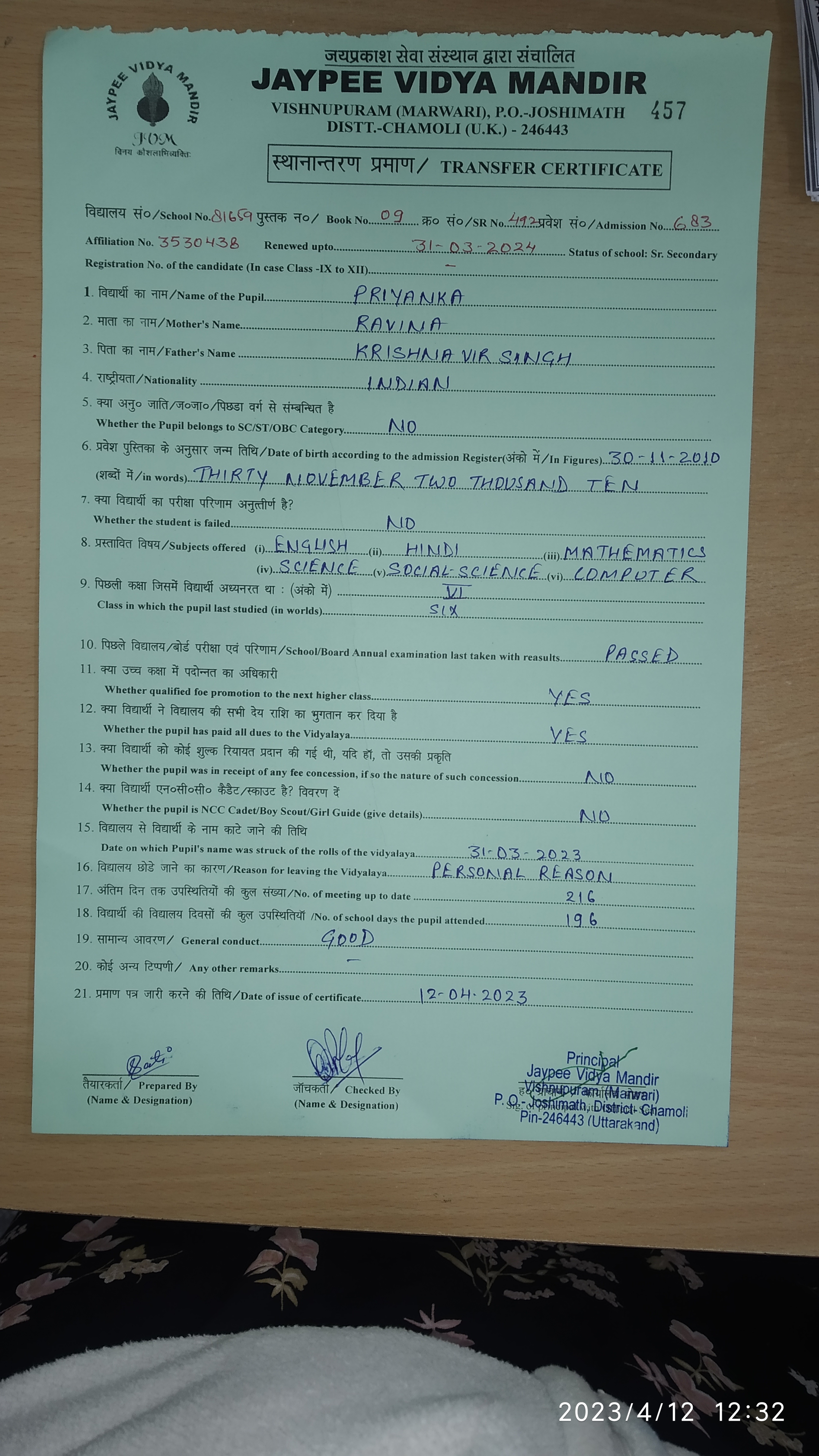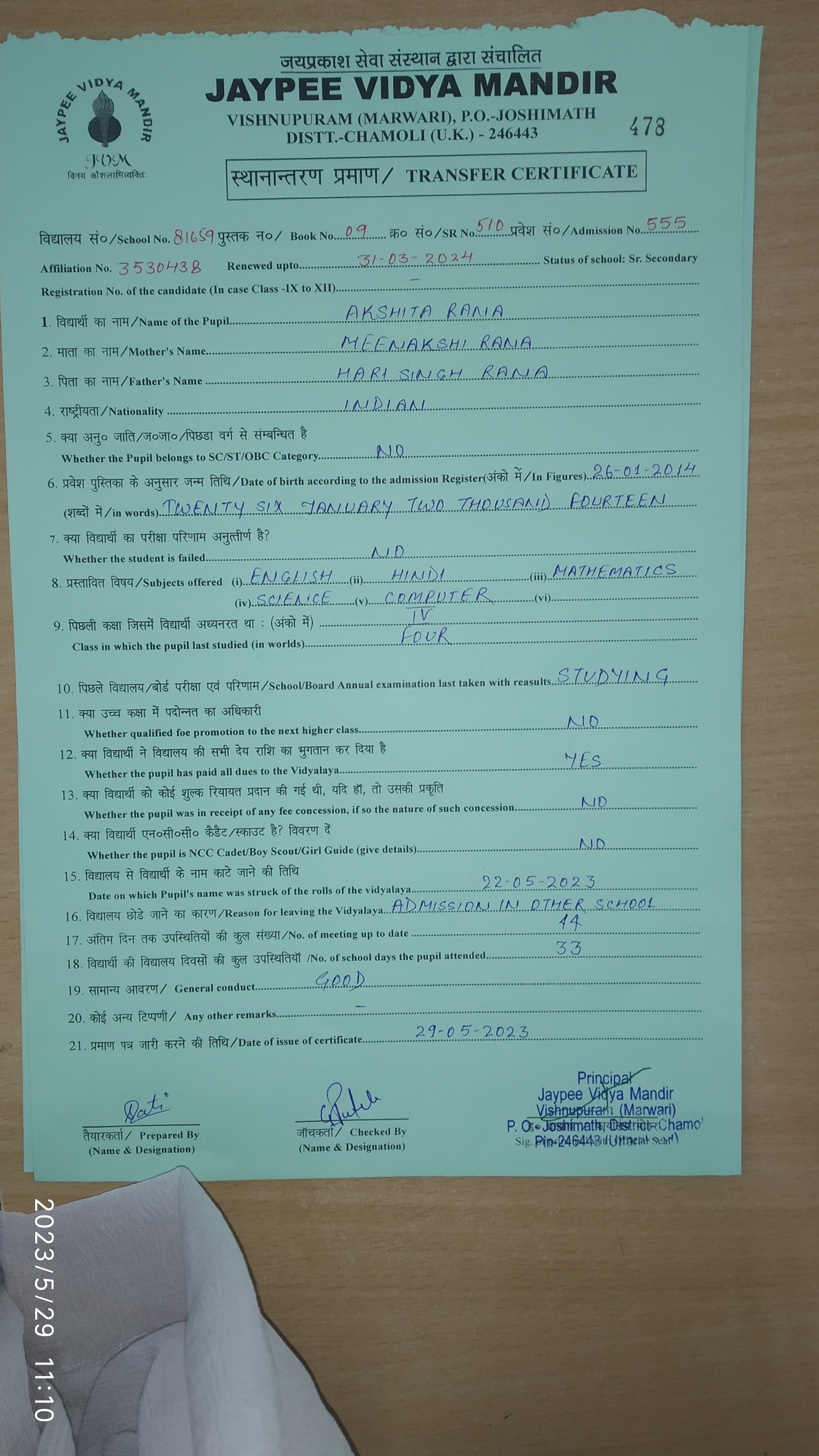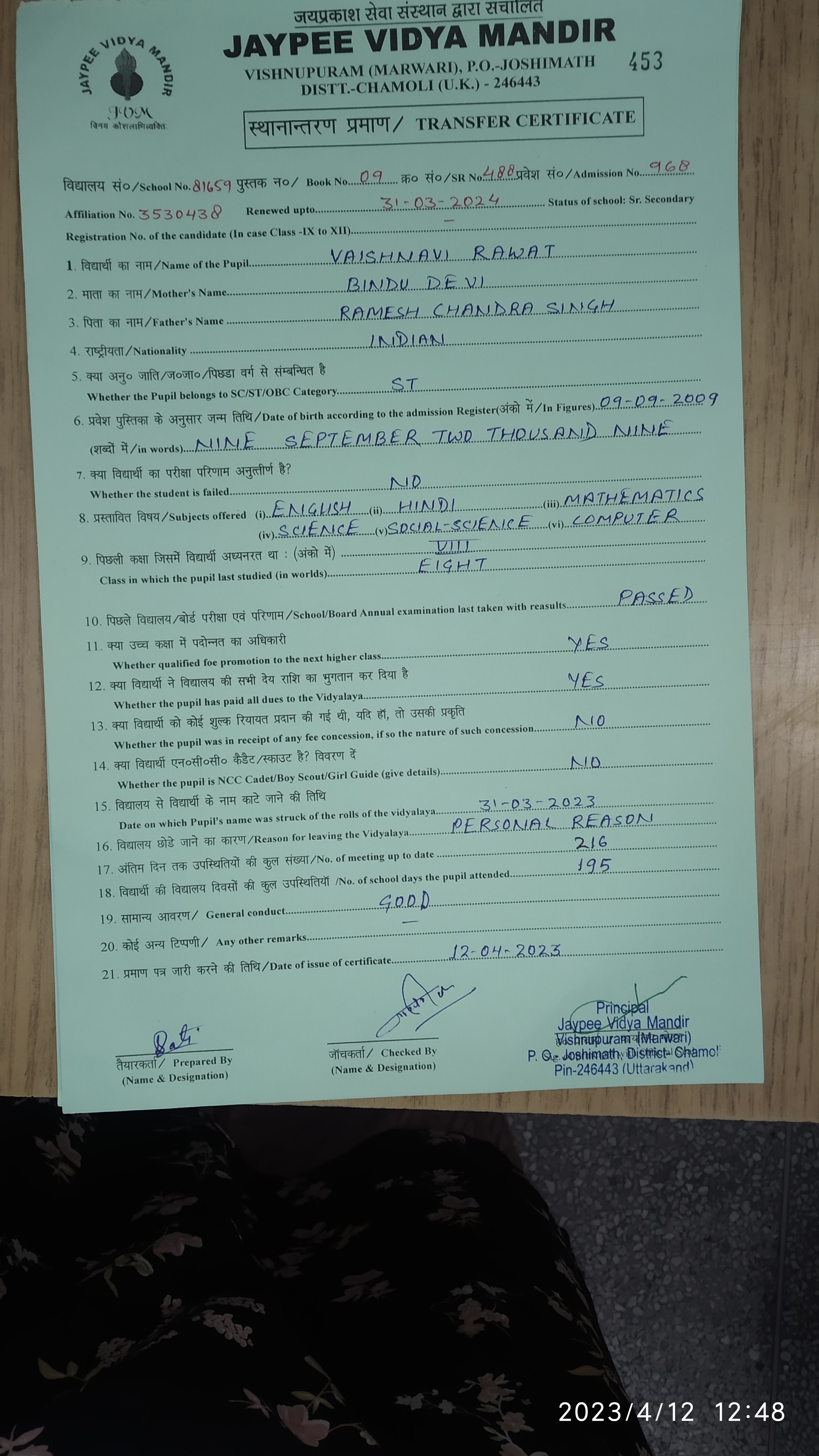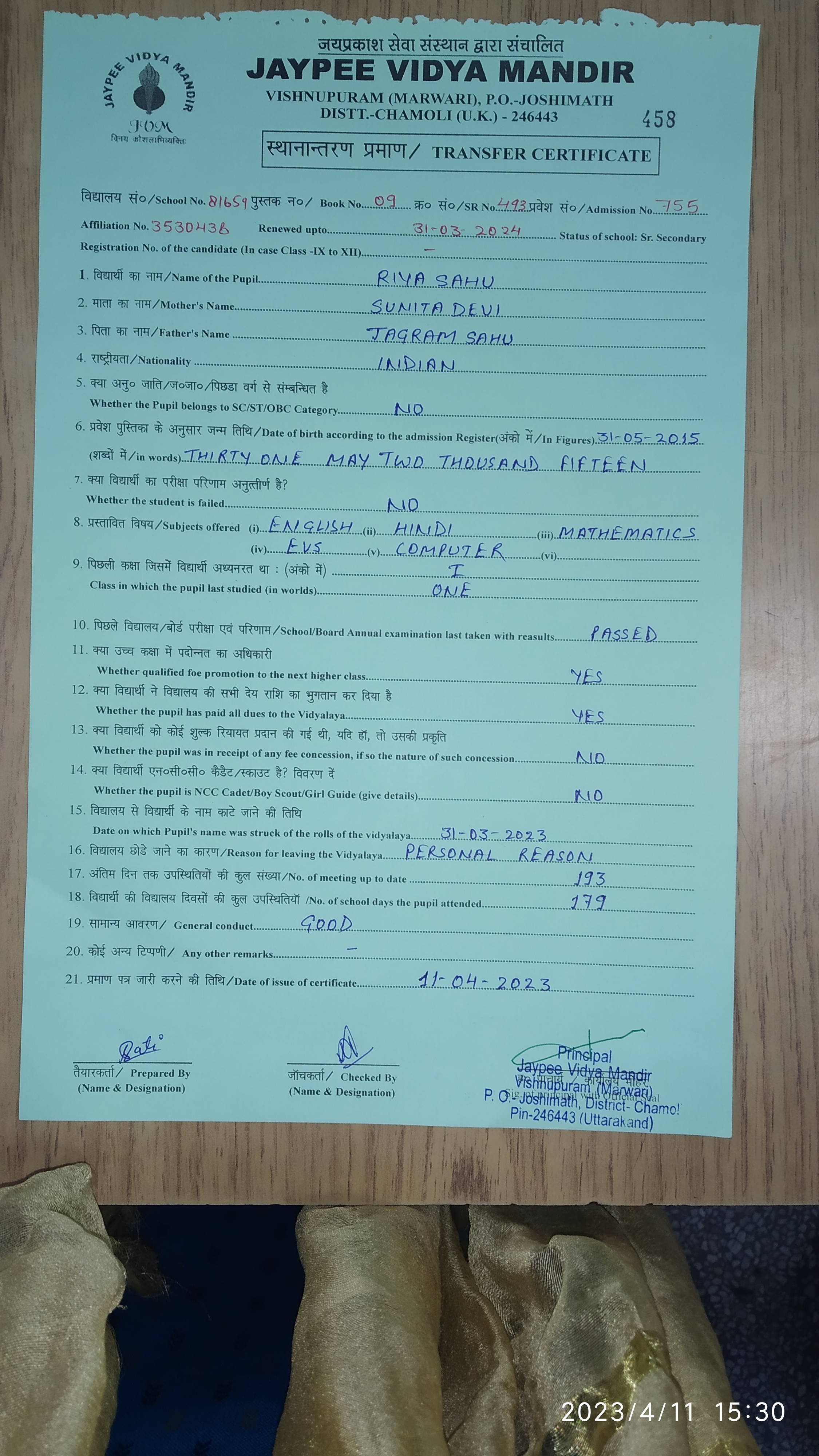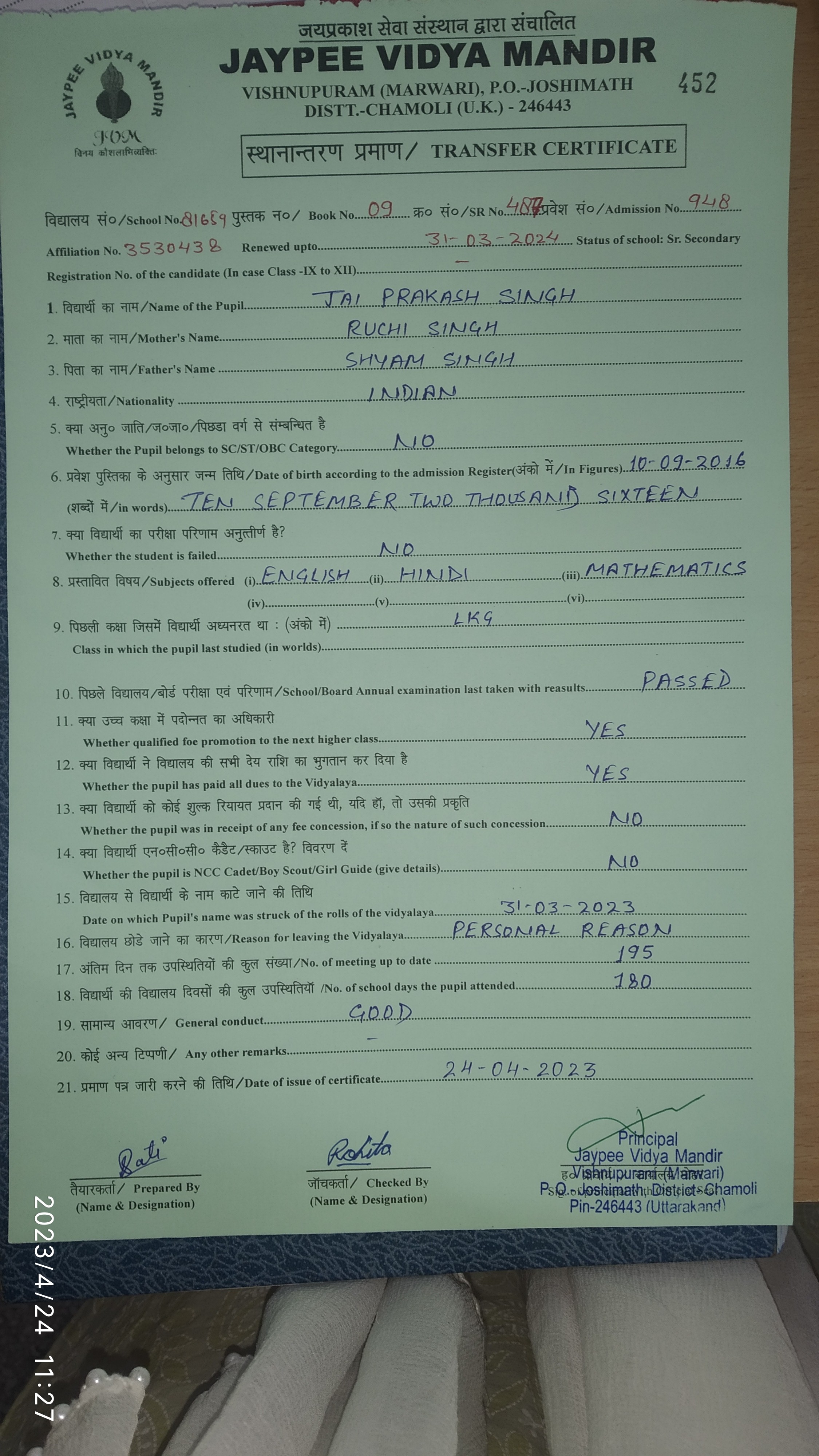 Tranfer Certificate |