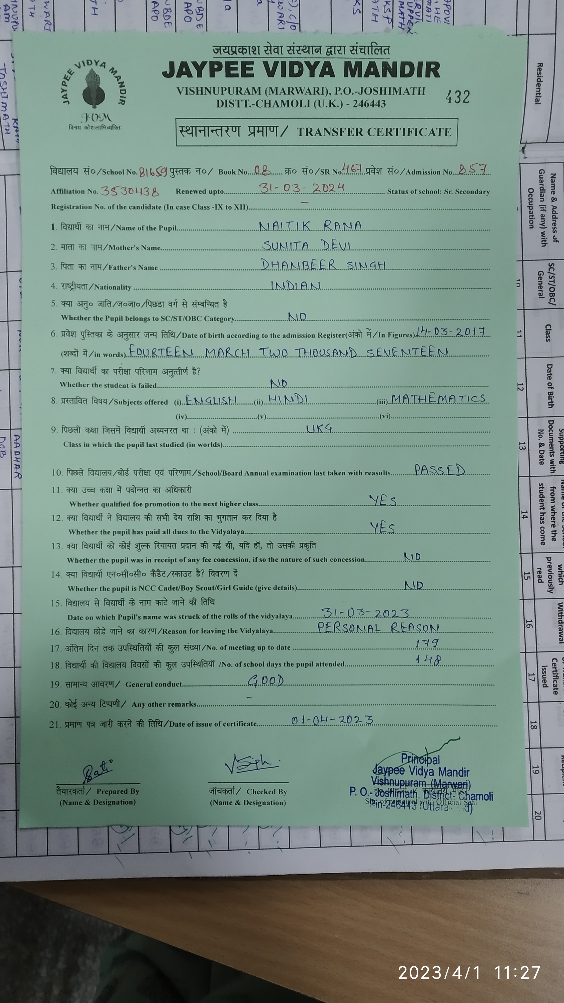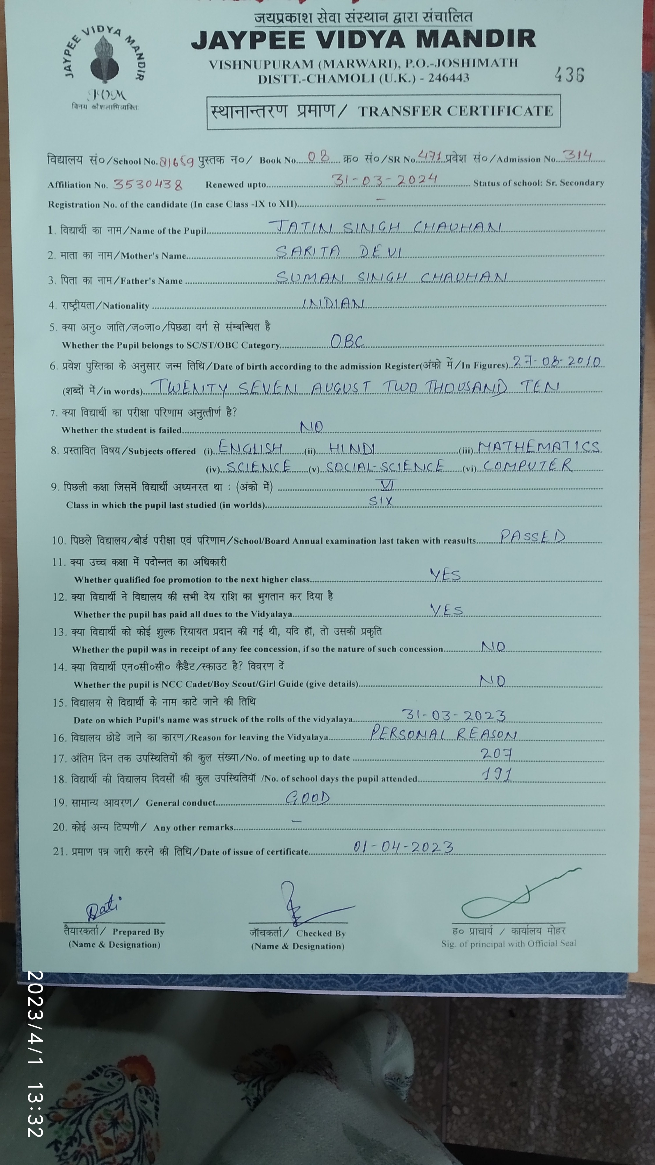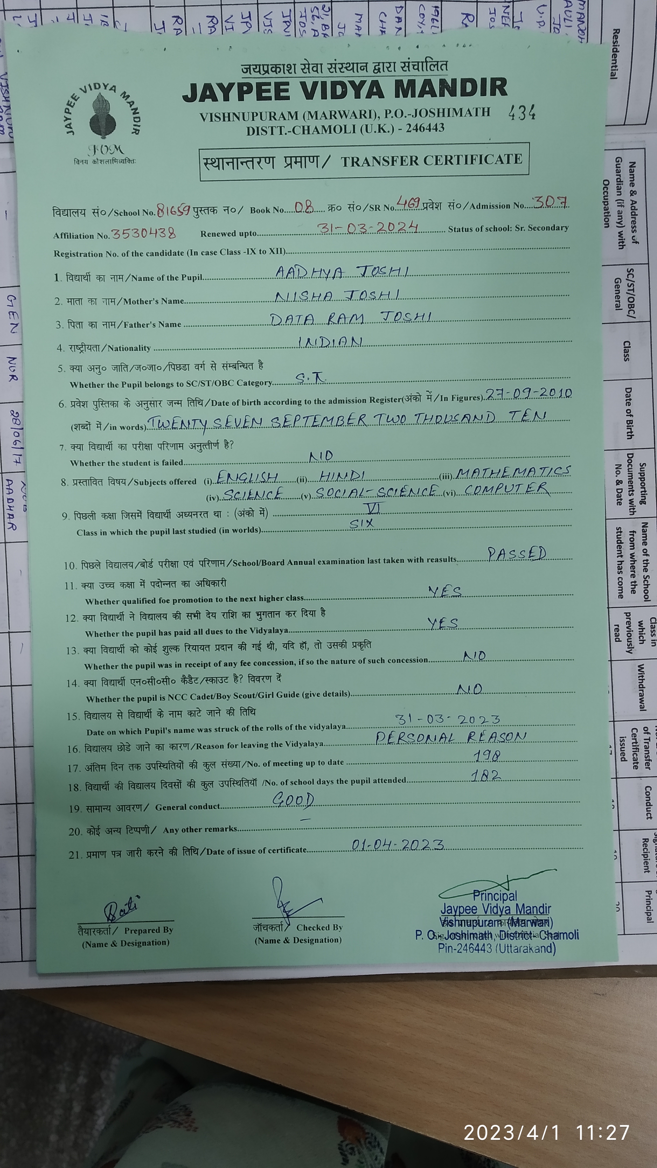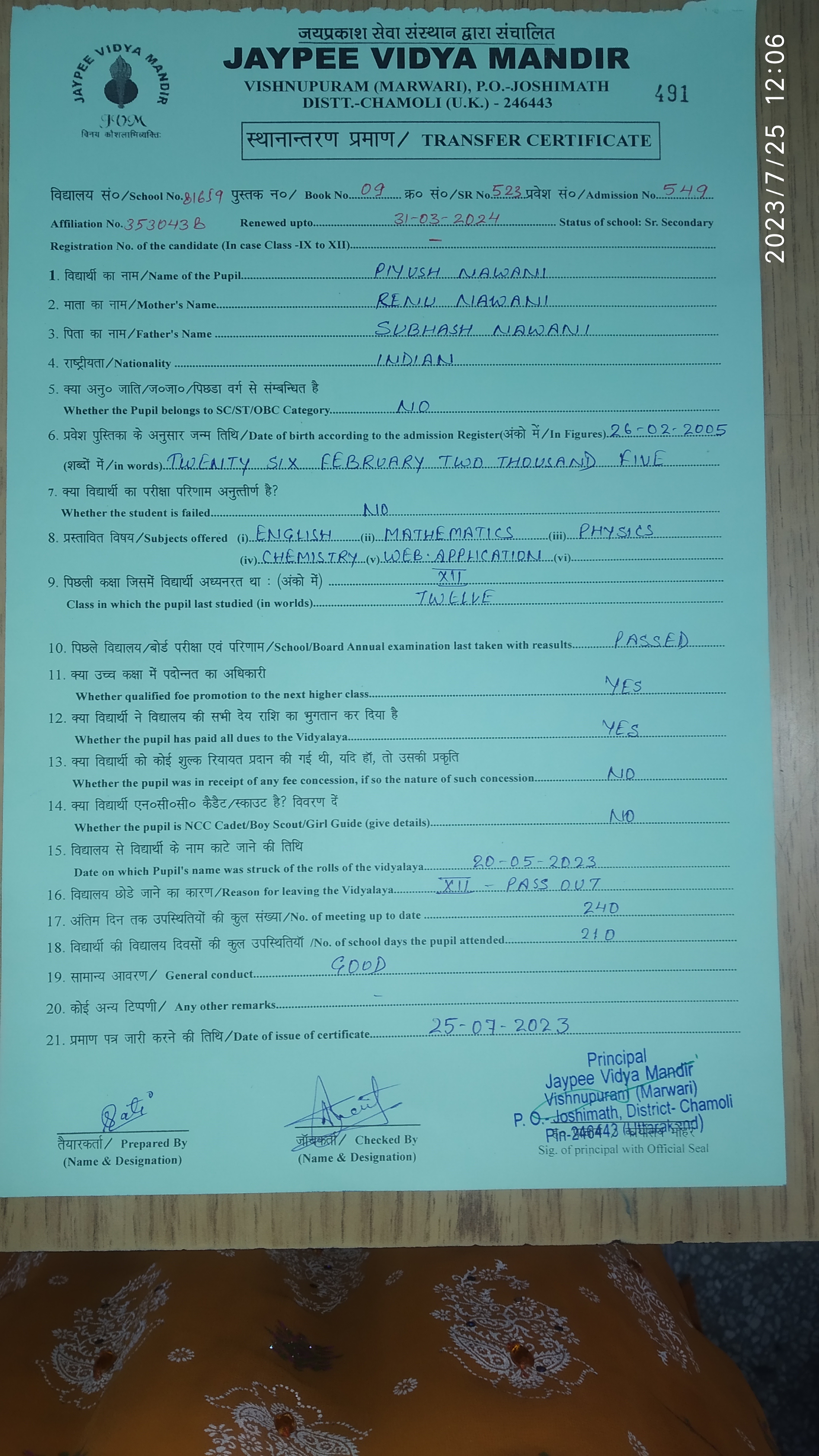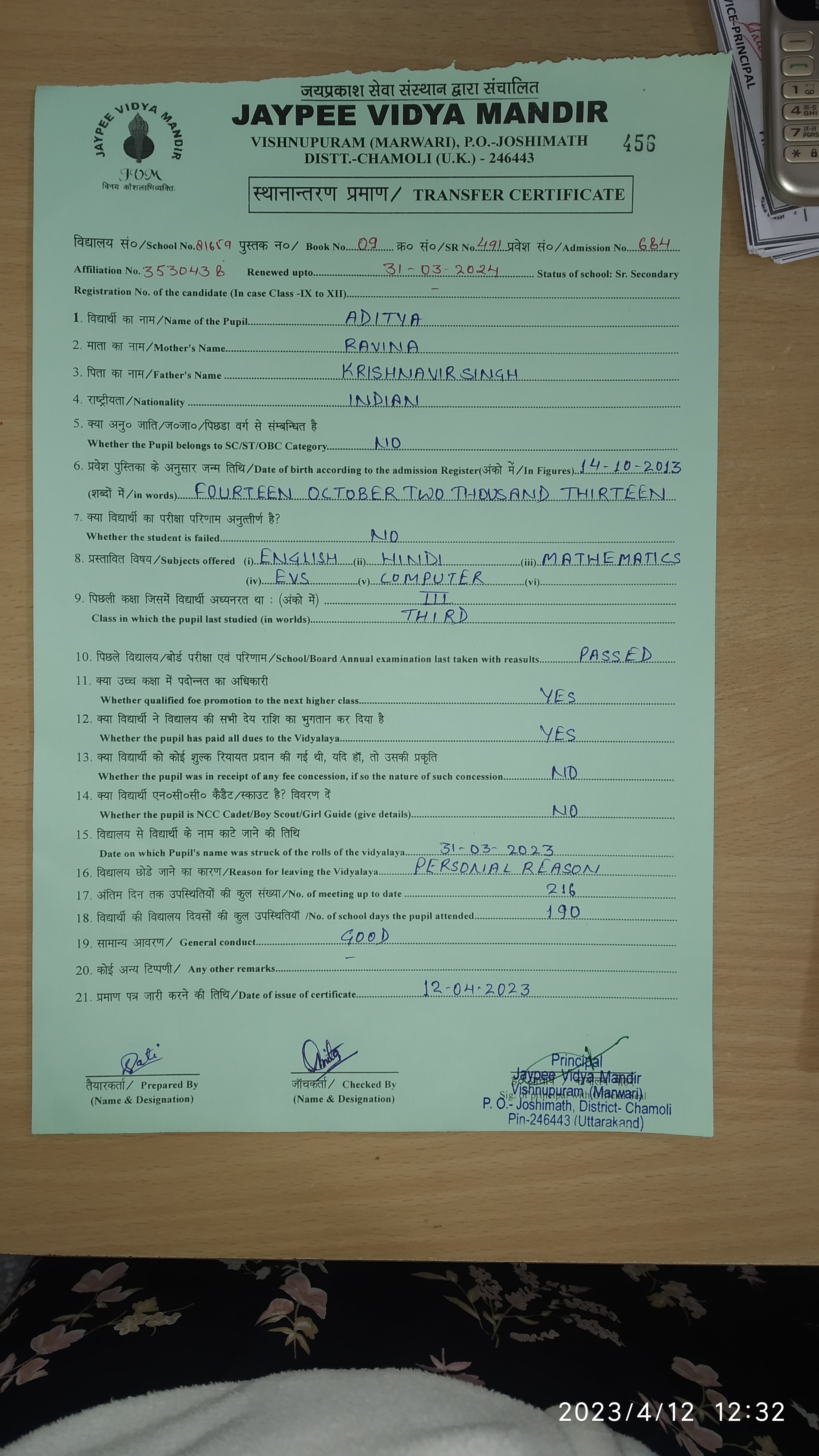 Tranfer Certificate |
